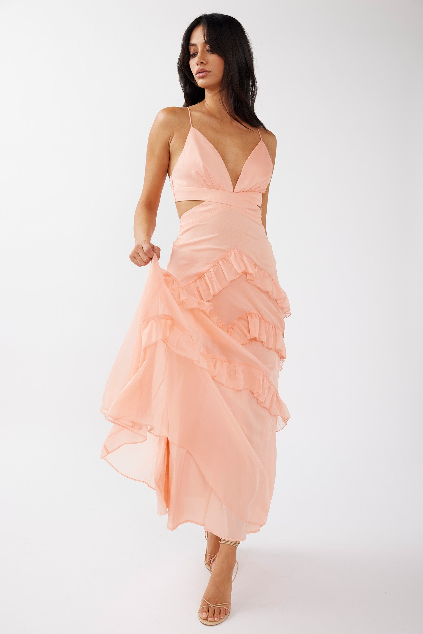 Joss Ruffle Trim Cut-Out Dress Rose