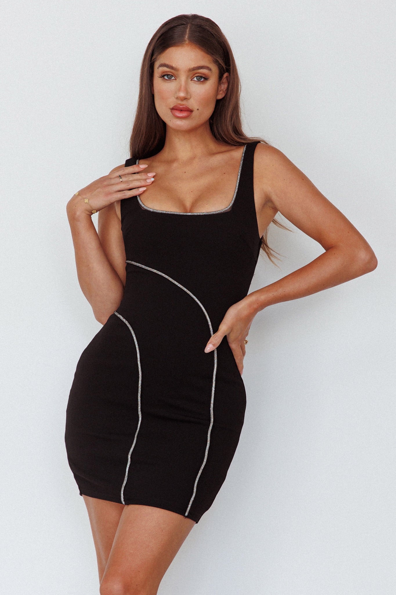 Steal the spotlight in our stunning Jourdan mini dress. Featuring a unique U neckline and a pretty diamante rope trim. Perfect for a birthday or a romantic date night with your lover. Team it with diamante mules and a clutch for an unforgettable look.
