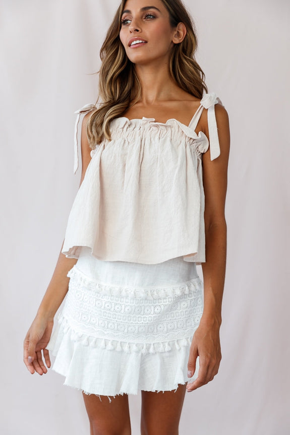 Journey Tied Shoulder Elasticated Neckline Top Beige
