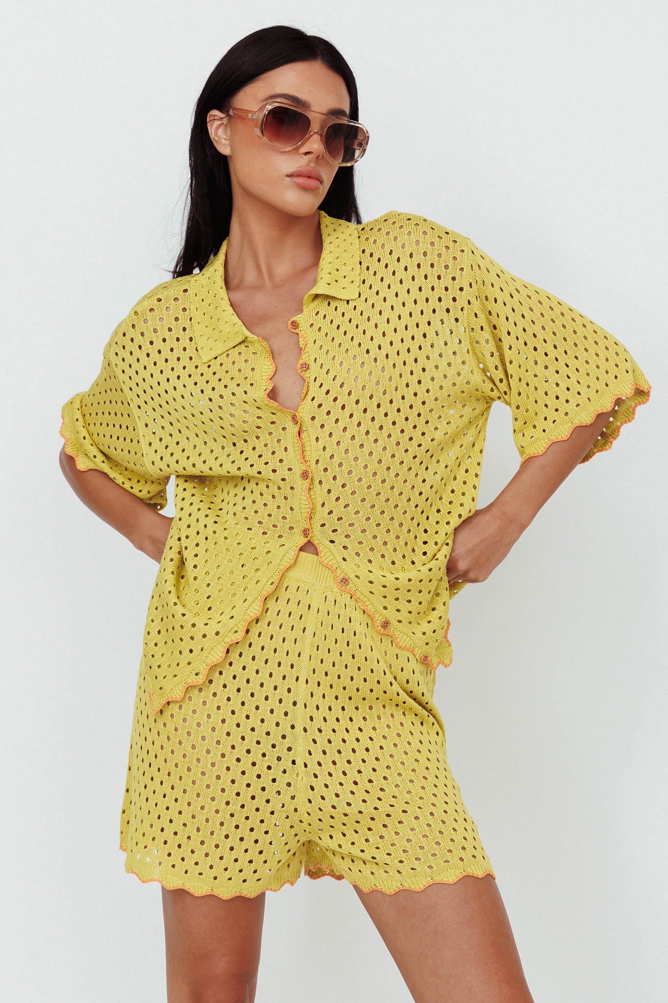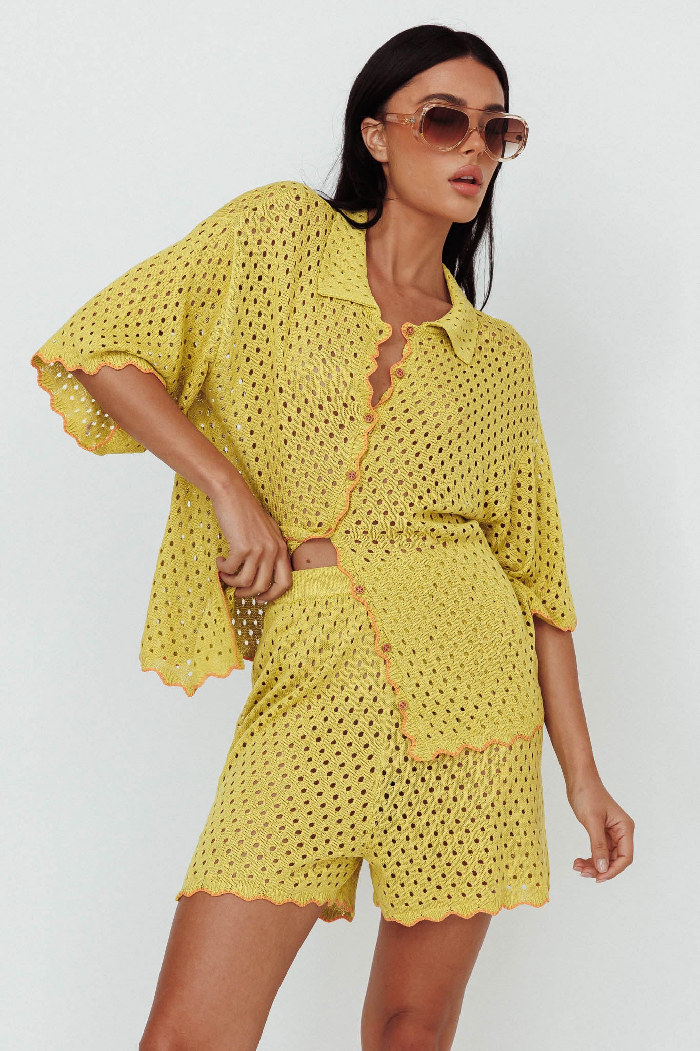 Hey there, cutie! We are majorly crushing on our Just A Hunch shorts. Perfect for weekend brunch dates with your besties, they look super cute paired with their matching shirt or wear it with a vest and mules for a look we are loving.