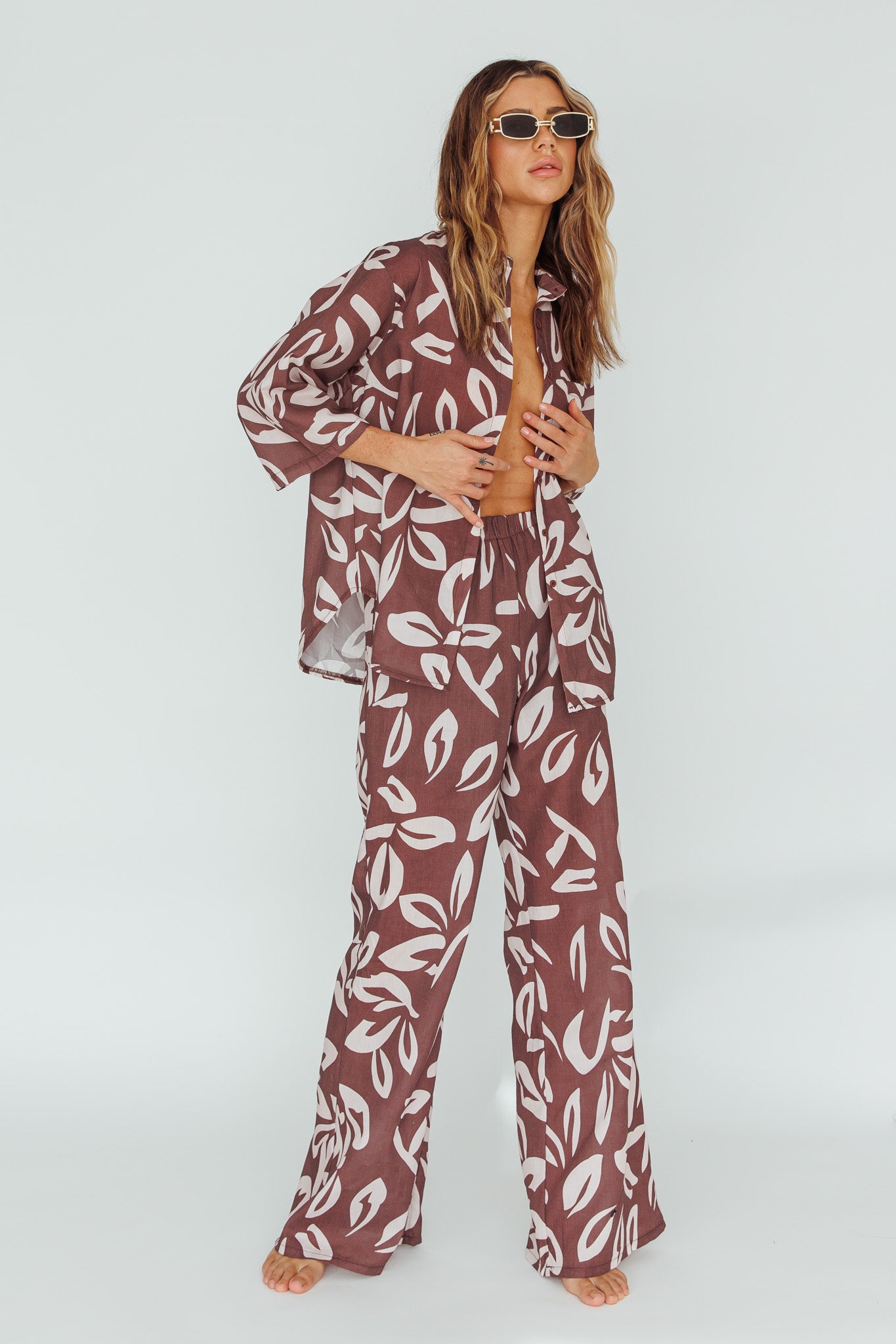 Hey there, cutie! We are loving the print on our Just A Hunch pants. Perfect for weekend brunch dates with your besties, they look super cute paired with their matching shirt or wear it with a vest and mules for a look we are loving.