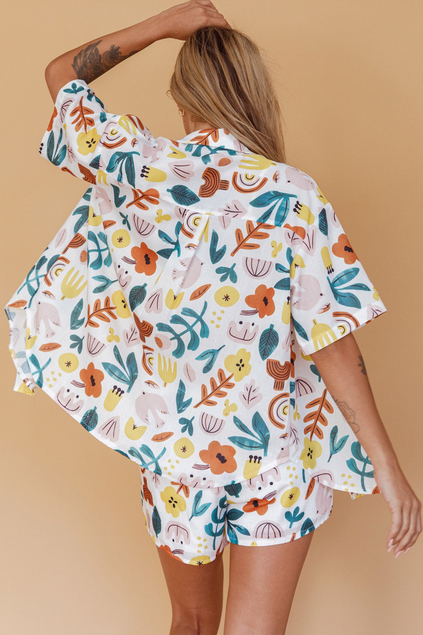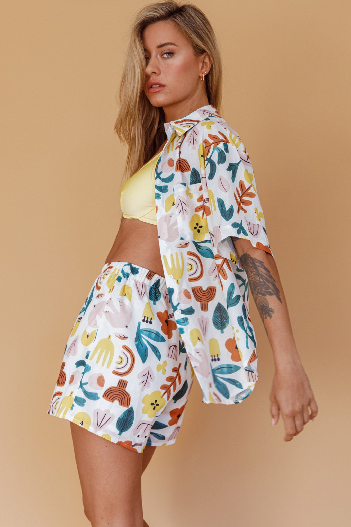 Hey there, cutie! We are loving the print on our Just A Hunch shorts. Perfect for weekend brunch dates with your besties, it looks super cute paired with its matching shirt or wear it with a vest and mules for a look we are loving.