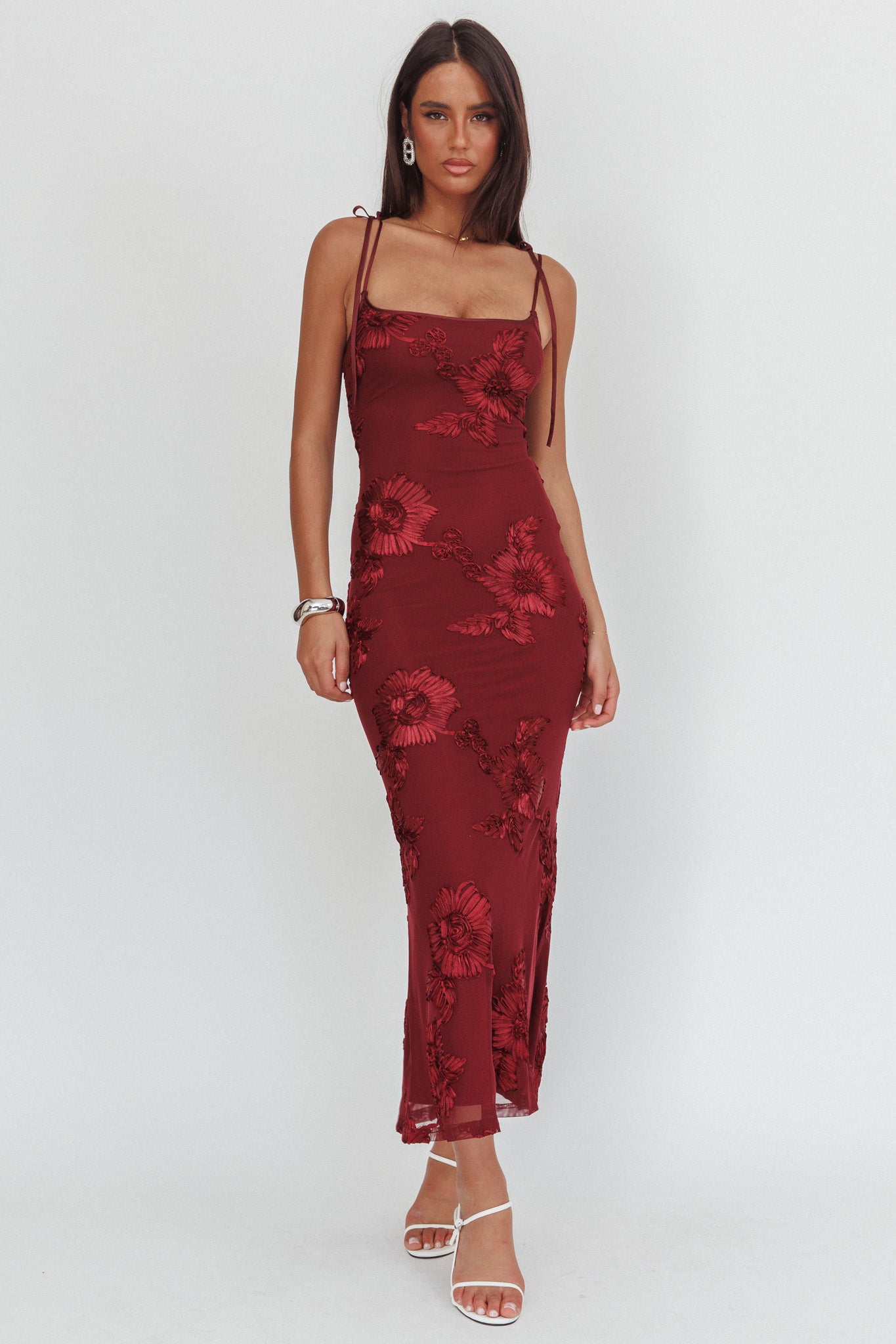 Kaela Tied Shoulder Maxi Dress Embellished Wine