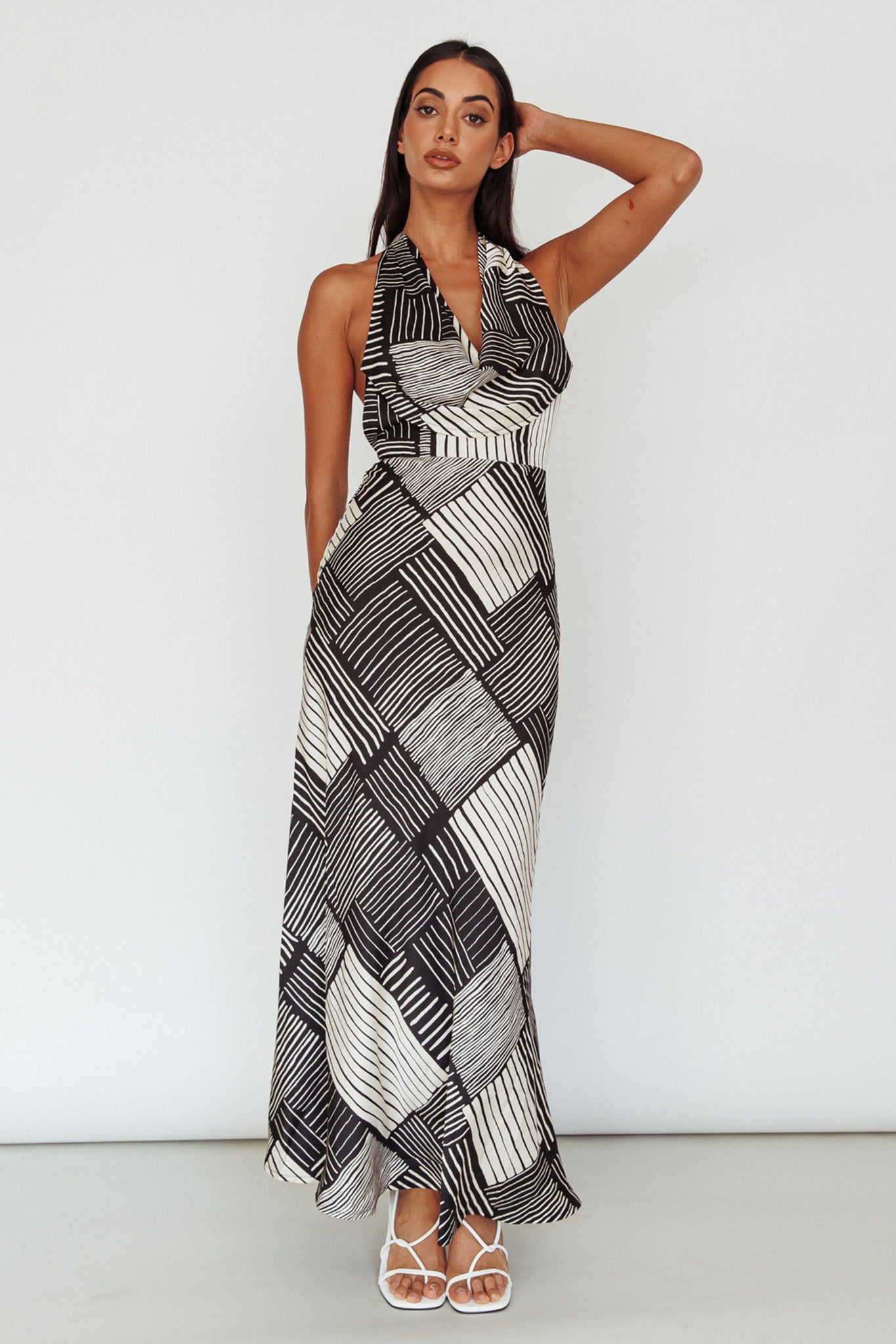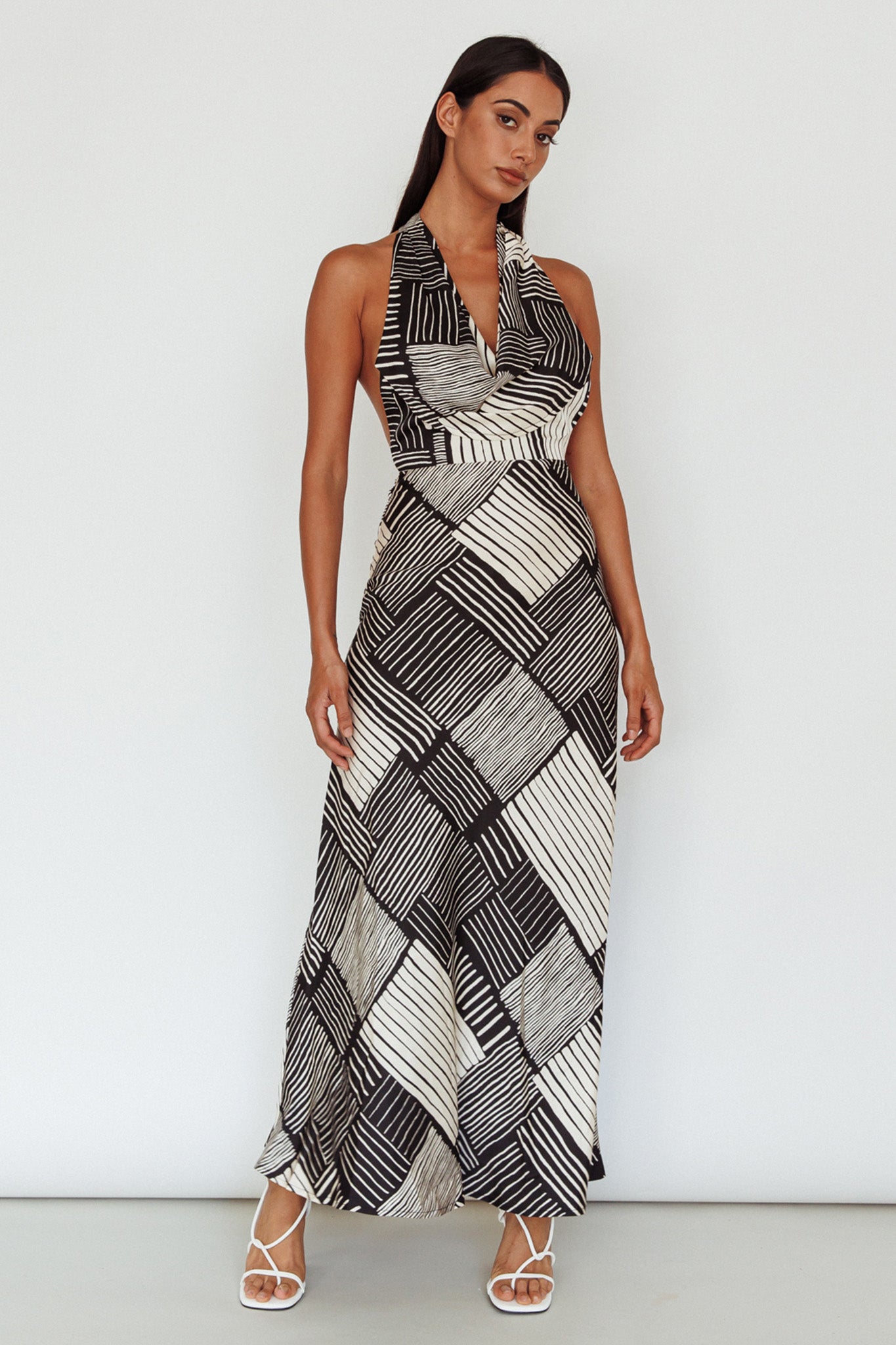 Make heads turn with our chic Kailie midi dress. We are loving the cool crosshatch print and on-trend cowl halterneck. Perfect for dinner and cocktails with your bff's. Team it with strappy, nude heels and a purse for a look we are loving.