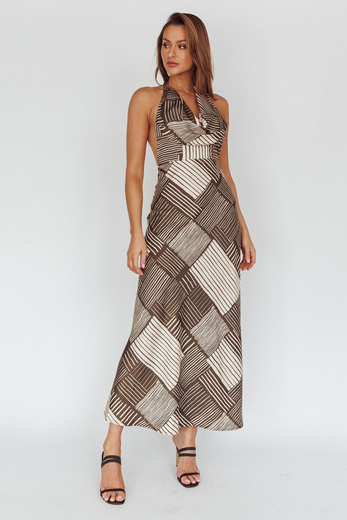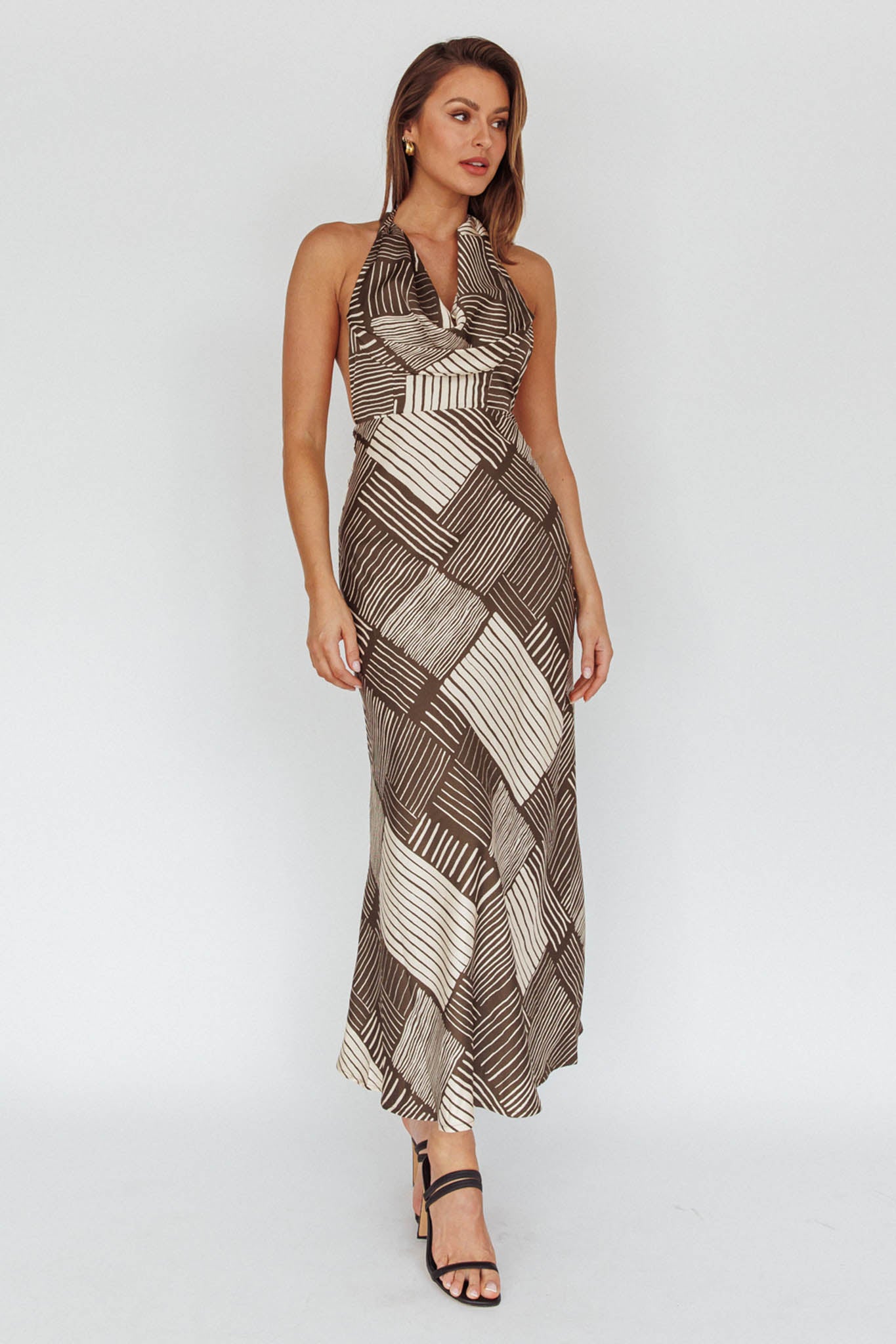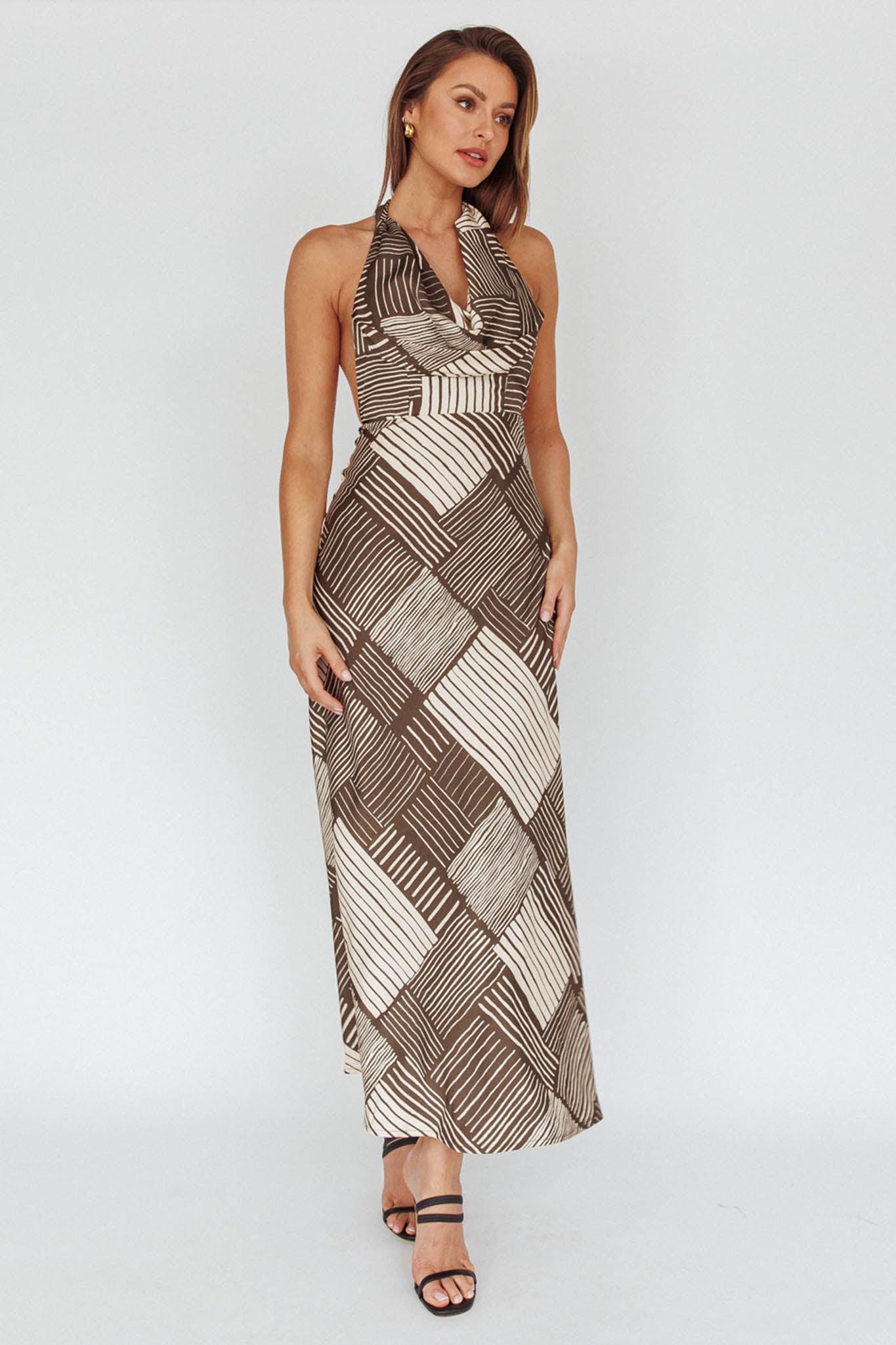 Make heads turn with our chic Kailie midi dress. We are loving the cool crosshatch print and on-trend cowl halterneck. Perfect for dinner and cocktails with your bff's. Team it with strappy, nude heels and a purse for a look we are loving.