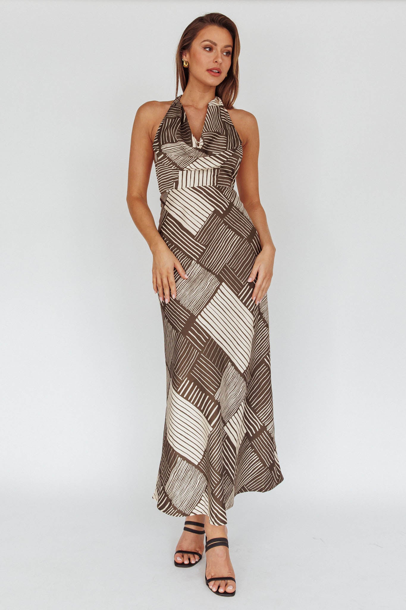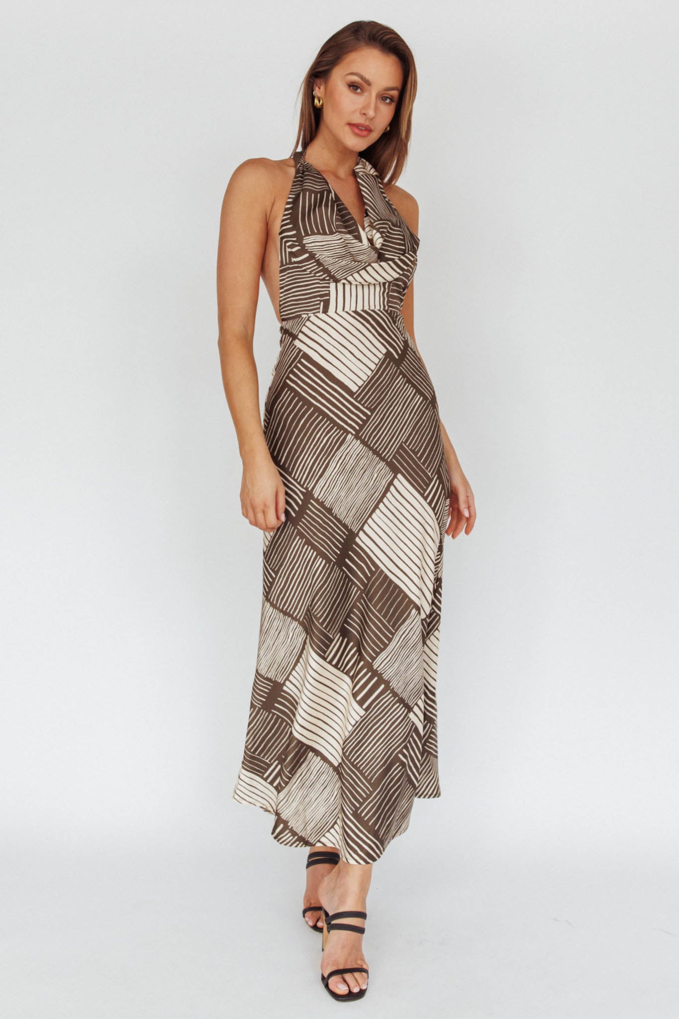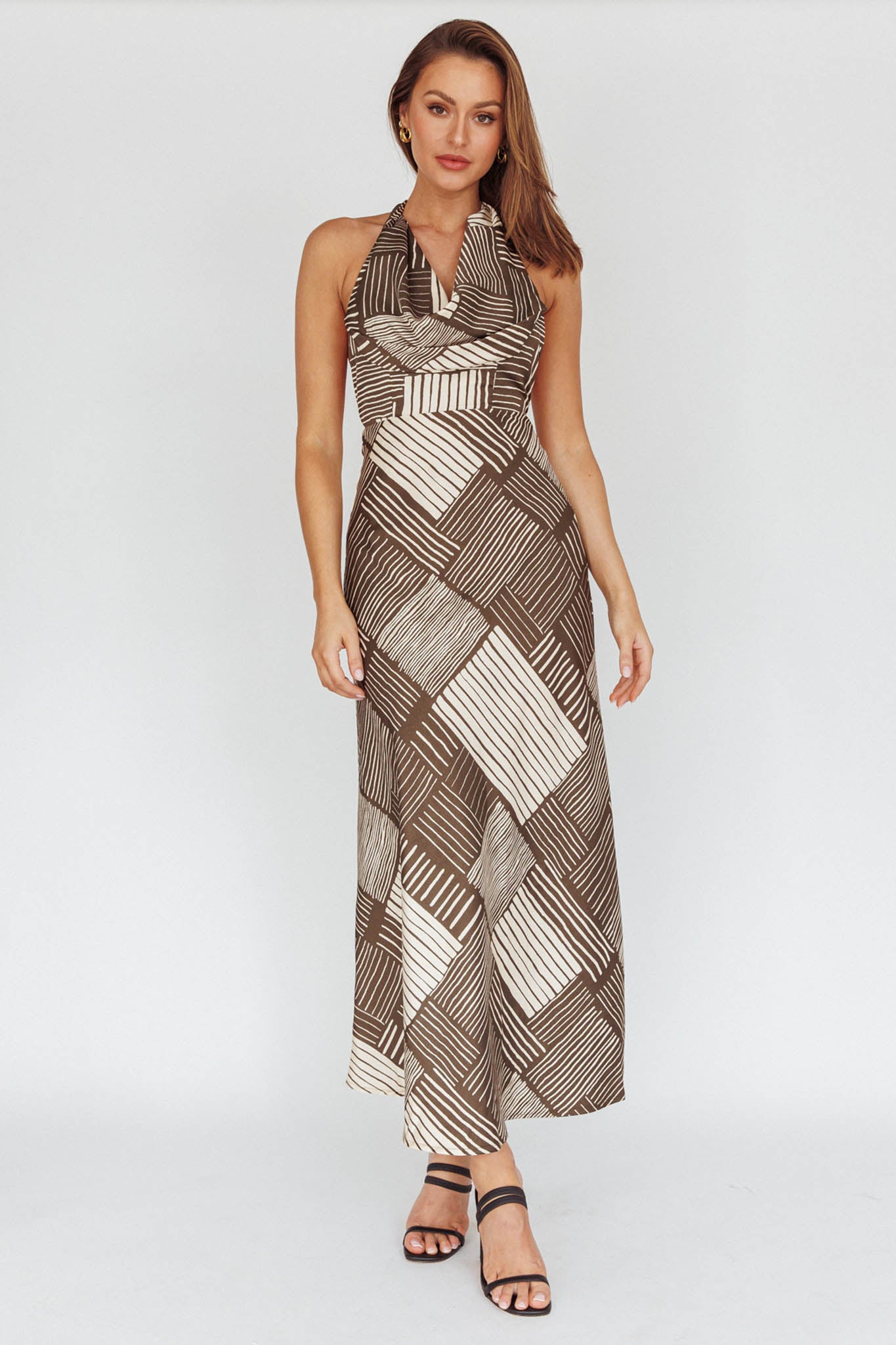 Make heads turn with our chic Kailie midi dress. We are loving the cool crosshatch print and on-trend cowl halterneck. Perfect for dinner and cocktails with your bff's. Team it with strappy, nude heels and a purse for a look we are loving.
