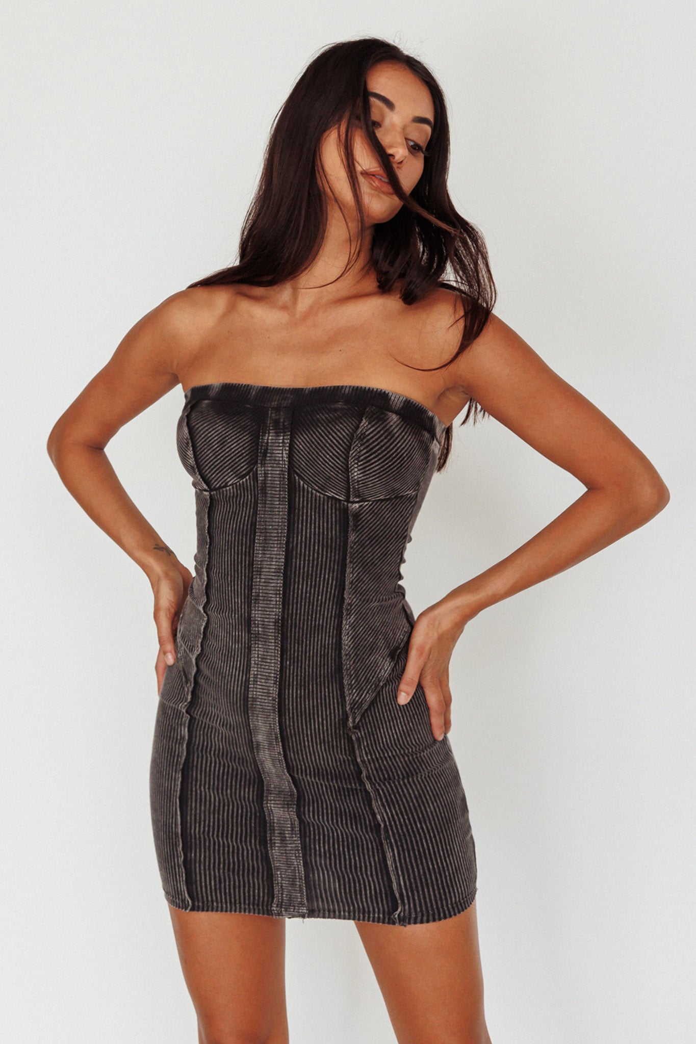 Play it cool in our super cute Keep Up mini dress. We are obsessed with its stretchy, ribbed fabric to hug your curves. Perfect for a flirty date night with your beau. Team it with black heels and a sleek bun for a chic look we are all about.