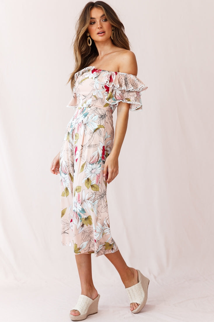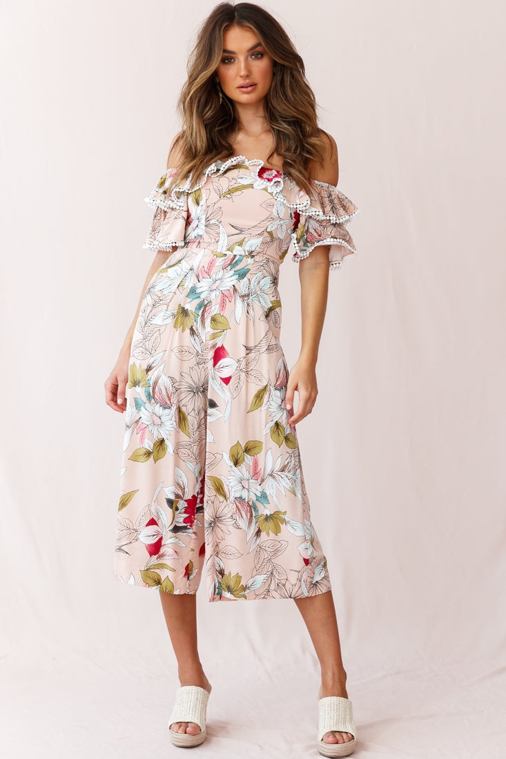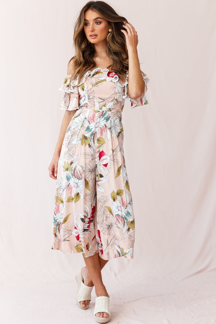 Keeper Off-Shoulder Culotte Jumpsuit Floral Print Mocha
