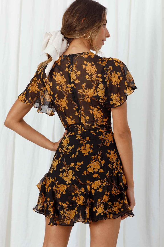 Garden party? Meeting the in-laws? This pretty dress has you covered. Partially lined, with its on-trend ruffle detail in the skirt, angel sleeves and flattering, faux-wrap neckline, you'll be turning heads everywhere you go. Pair it with nude pumps and layered gold necklaces for a look we are loving.
