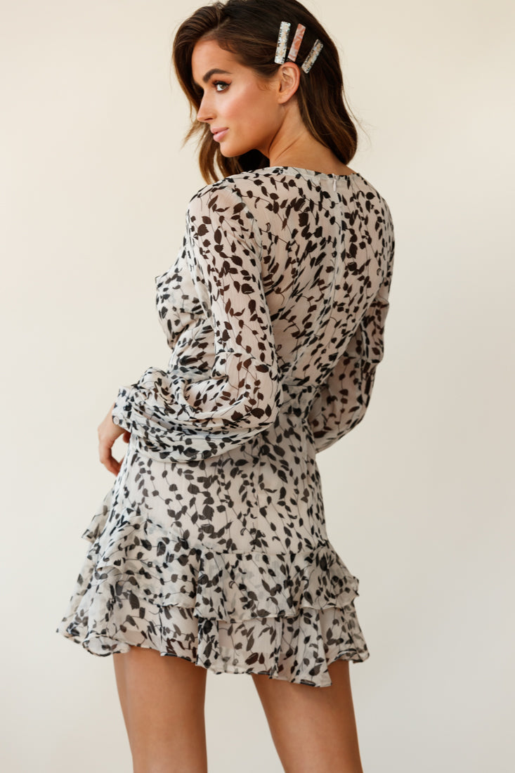 Wedding? Cocktail party? This gorgeous dress has you covered. Partially lined and with its on-trend ruffle detail in the skirt, long sleeves and flattering, faux-wrap neckline, you'll be turning heads everywhere you go. Pair it with single strap nude heels and a clutch for a look we are loving.