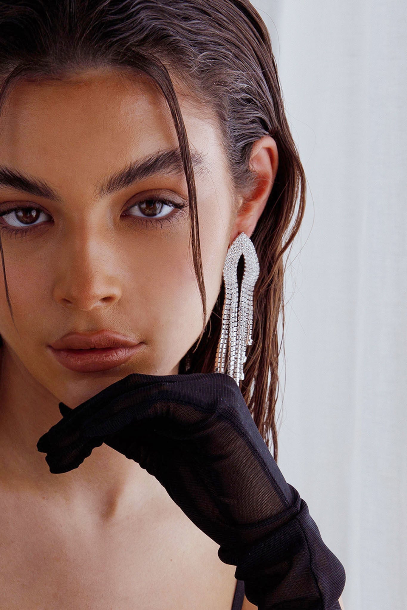 Make an entrance in our stunning Khloe tassel earrings. Featuring diamante embellishment and a unique tassel design; obsessed is an understatement! Wear them to homecoming or a special occasion teamed with an elegant, satin dress and diamante clutch.