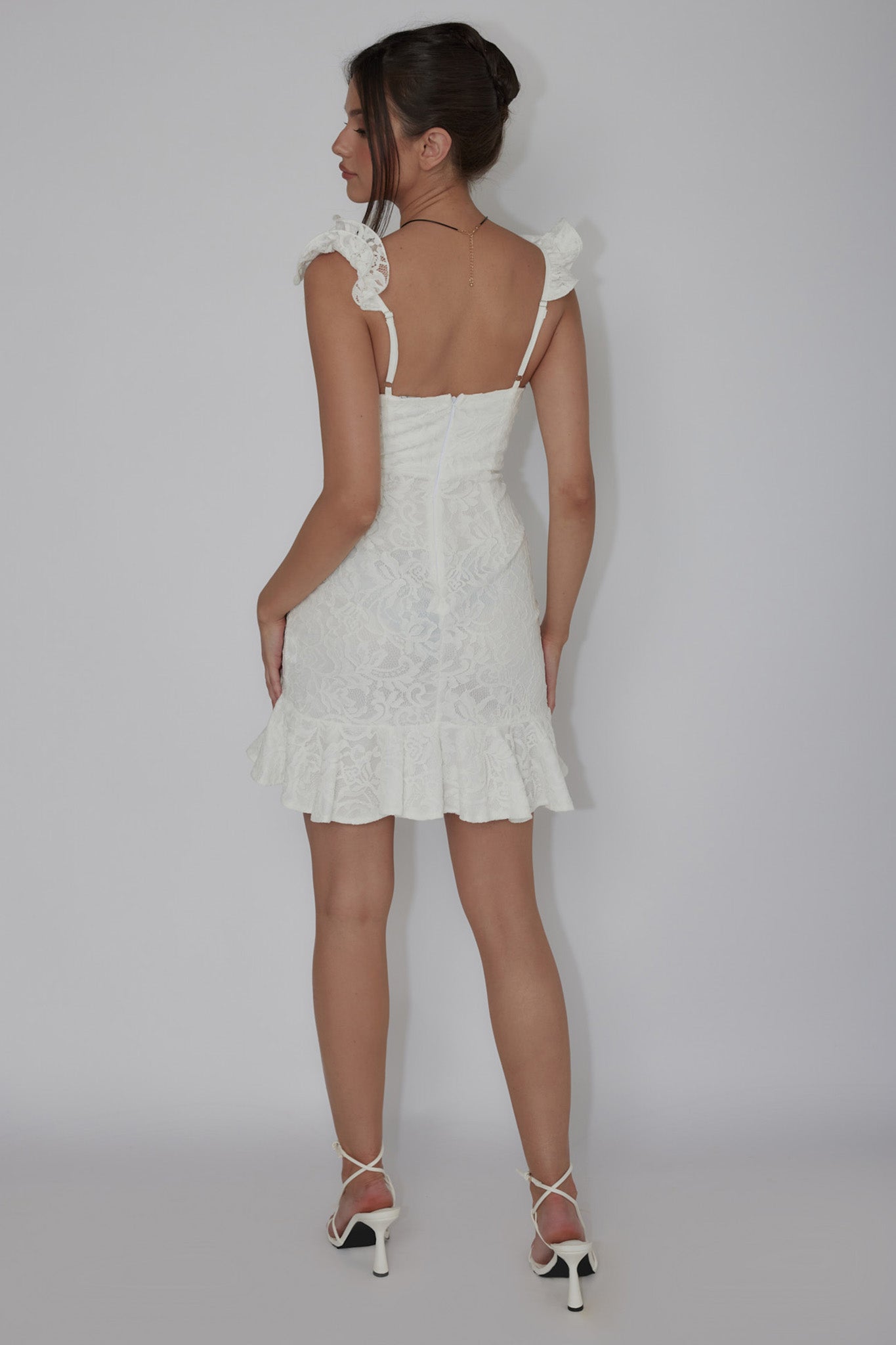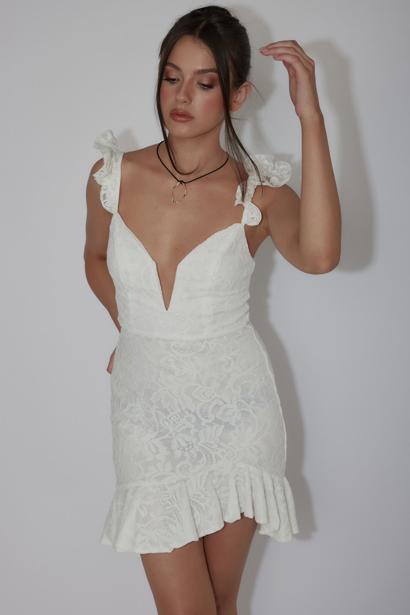 Turn heads in our gorgeous Kianna mini dress. Featuring a lace overlay and ruffle trim. It's perfect for a birthday or special occasion. Team it with strappy mules and a chic clutch for an elegant look we are all about.