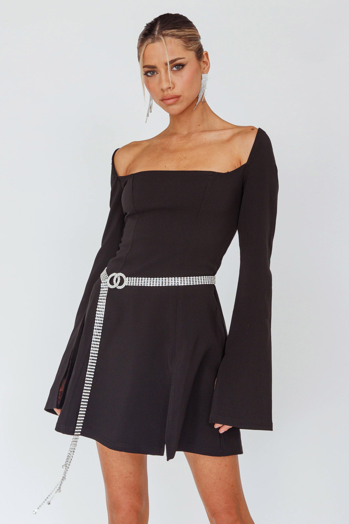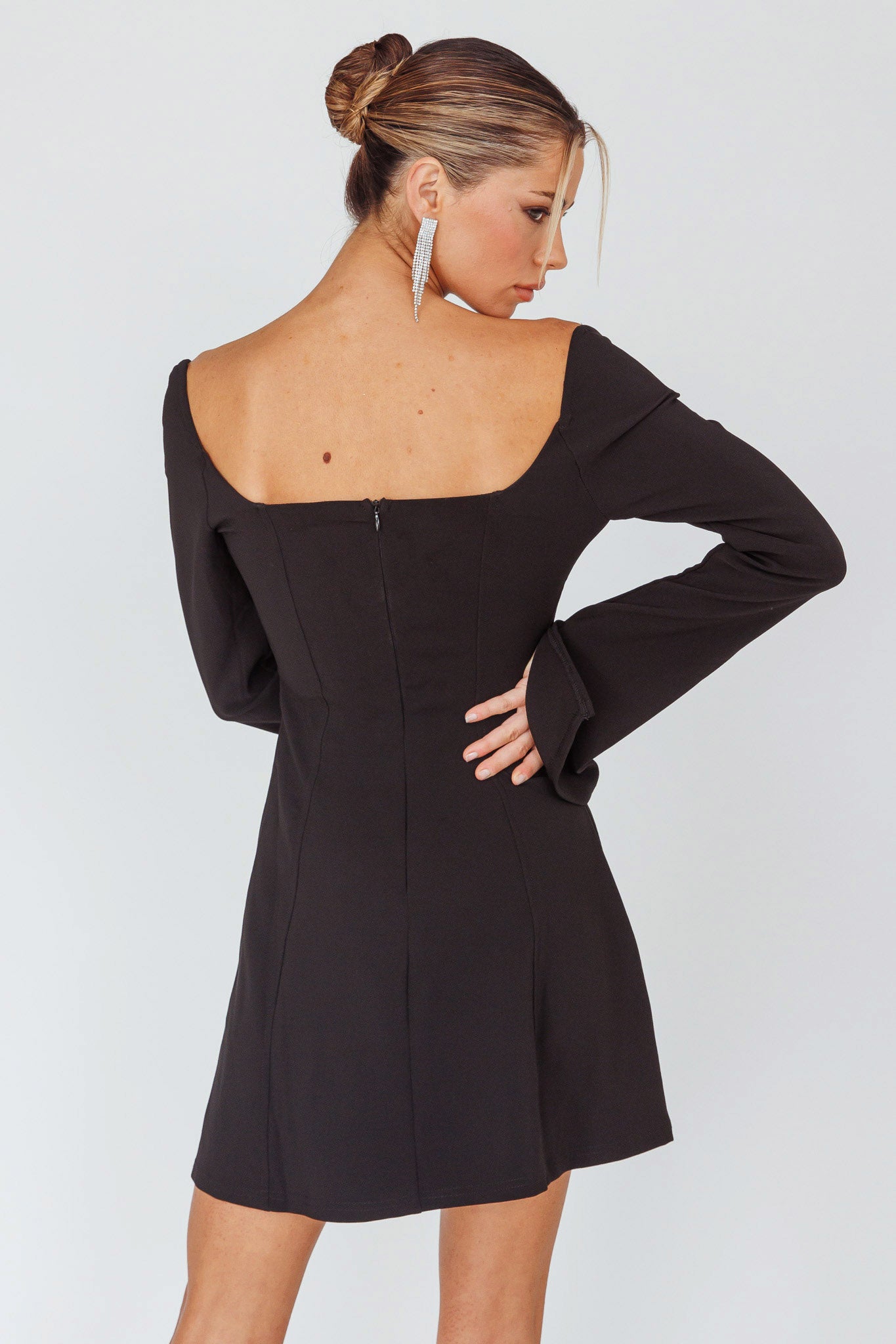 Heads will turn when you walk by in our chic Kieran mini dress. We are crushing on its flared sleeves and classic A-line silhouette. Perfect for a fun date night teamed with mules and a tote for a look we are loving.