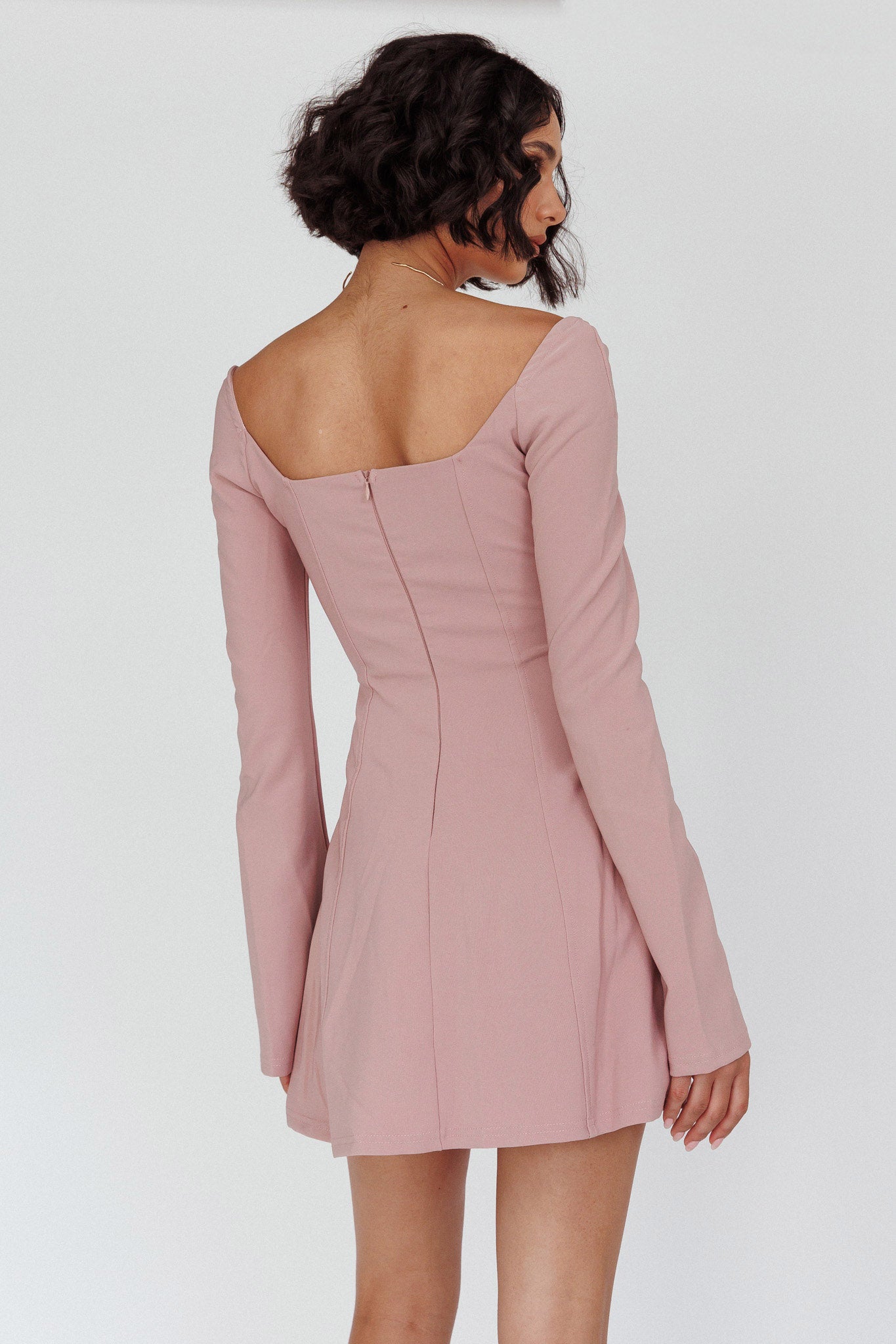 Kieran Long Sleeve A-Line Mini Dress Blush