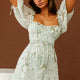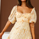 Kirra Puff Sleeve Ruched Bodice Dress Botanic Print Sage