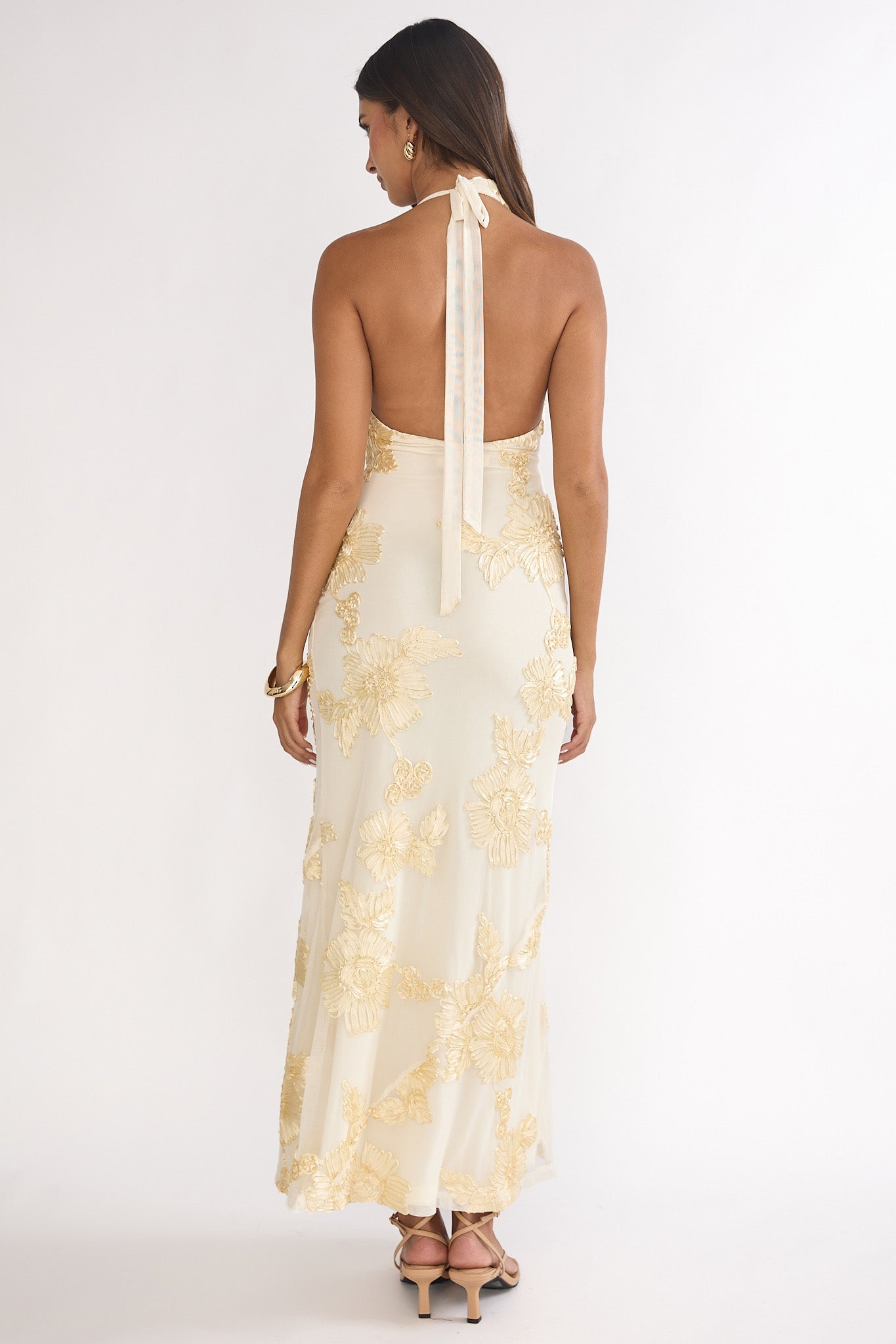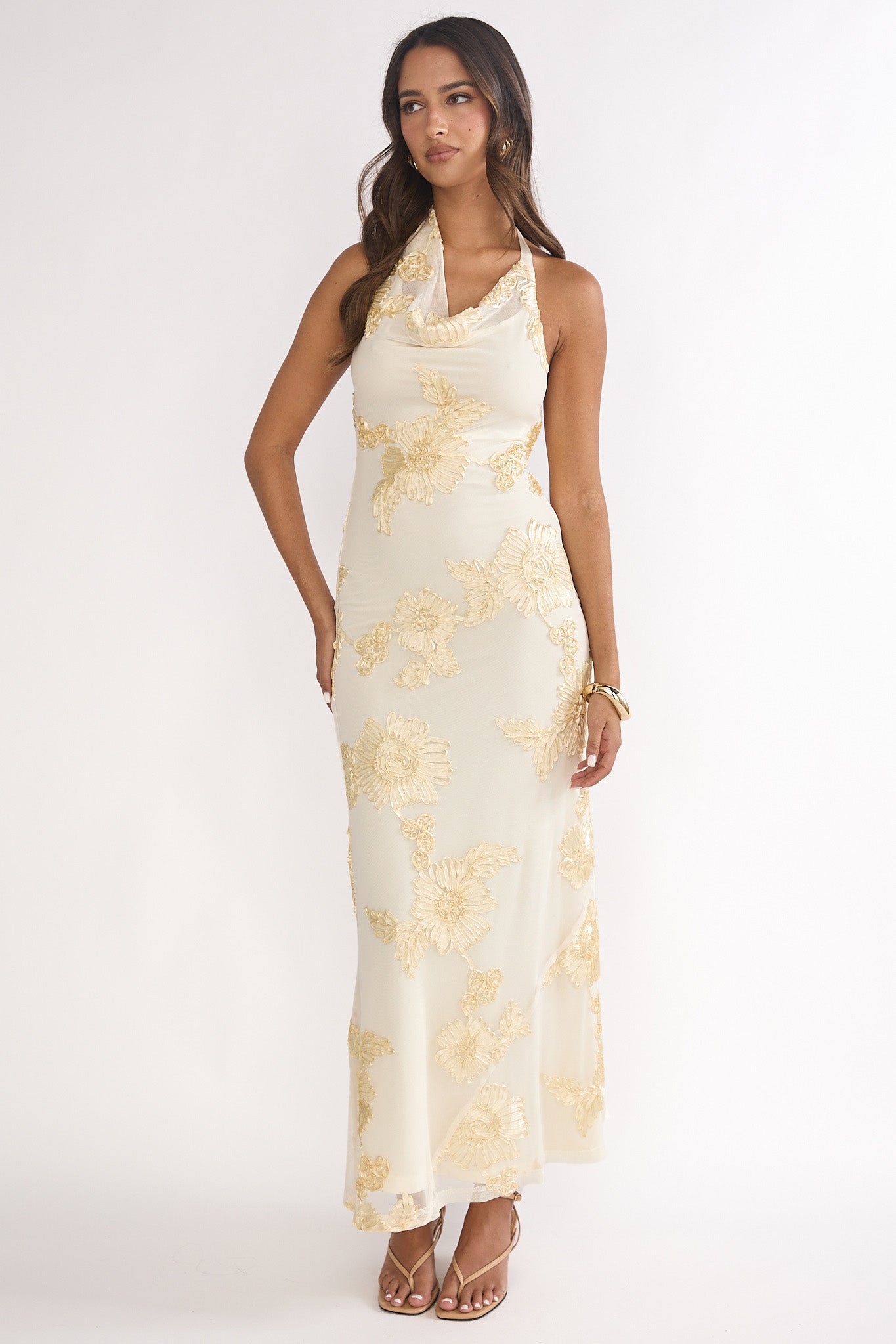 Kirralee Asymmetric Halterneck Embellished Maxi Dress Yellow
