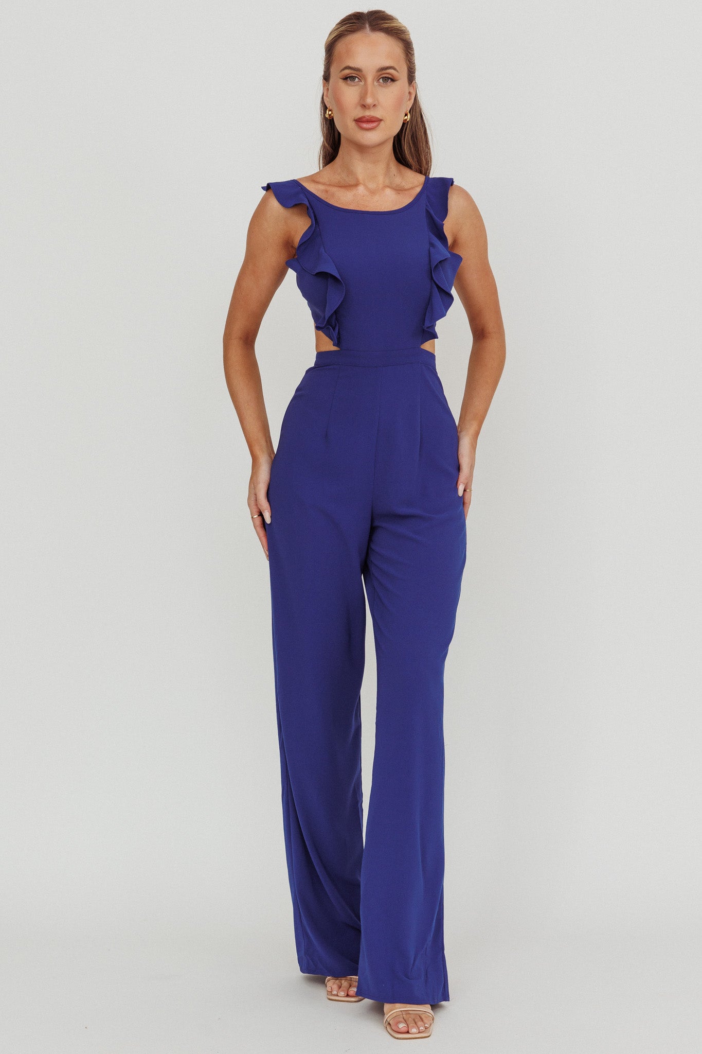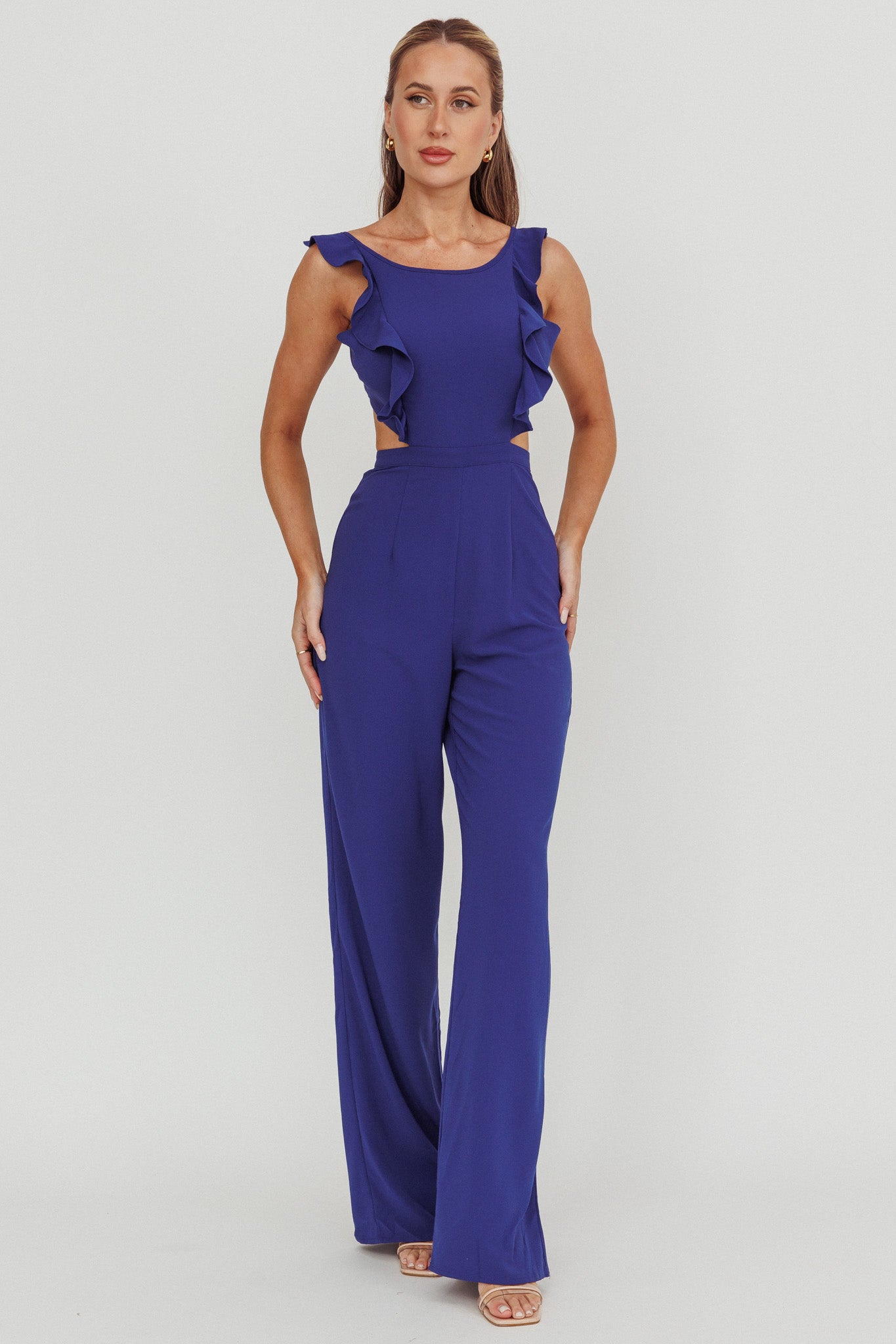 Kiss Me Sleeveless Ruffle Jumpsuit Blue