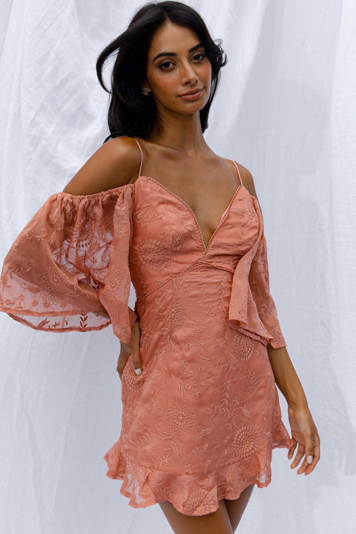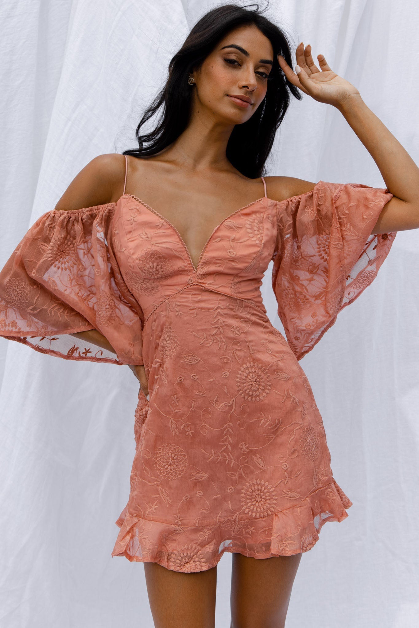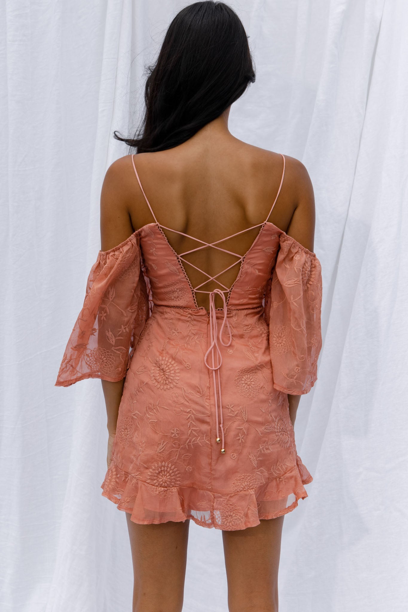 You're a real life angel in our gorgeous Koda dress. Featuring the prettiest embroidered fabric, off-shoulder bell sleeves and stunning lace-up back. Perfect for a garden wedding or dressy work event. Team it with nude pumps and a chic clutch for an elegant look we are loving.