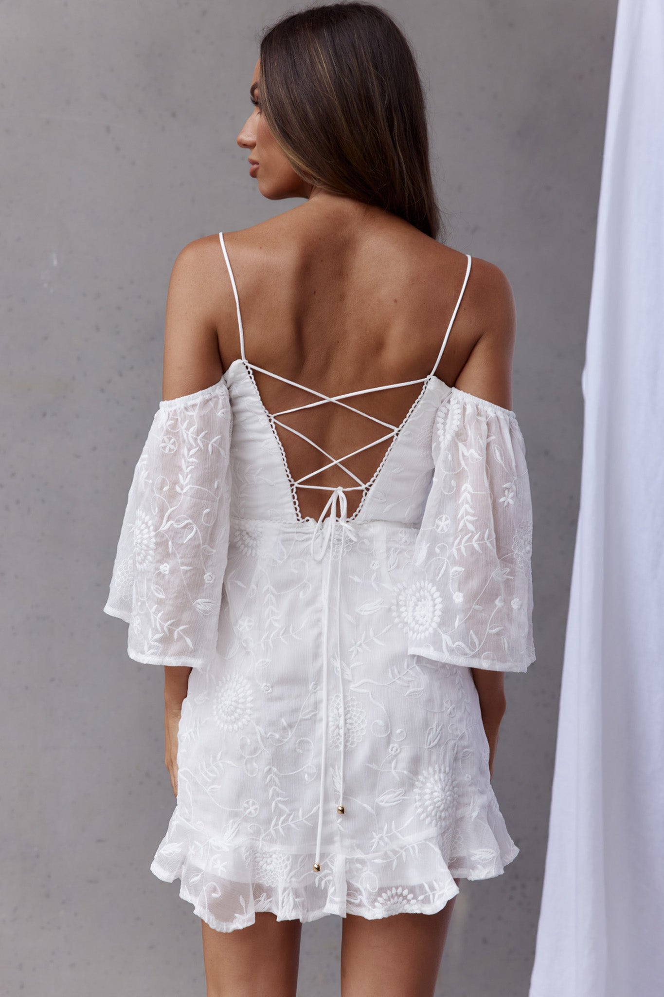 Koda Bell Sleeve Lace-Up Back Mini Dress White