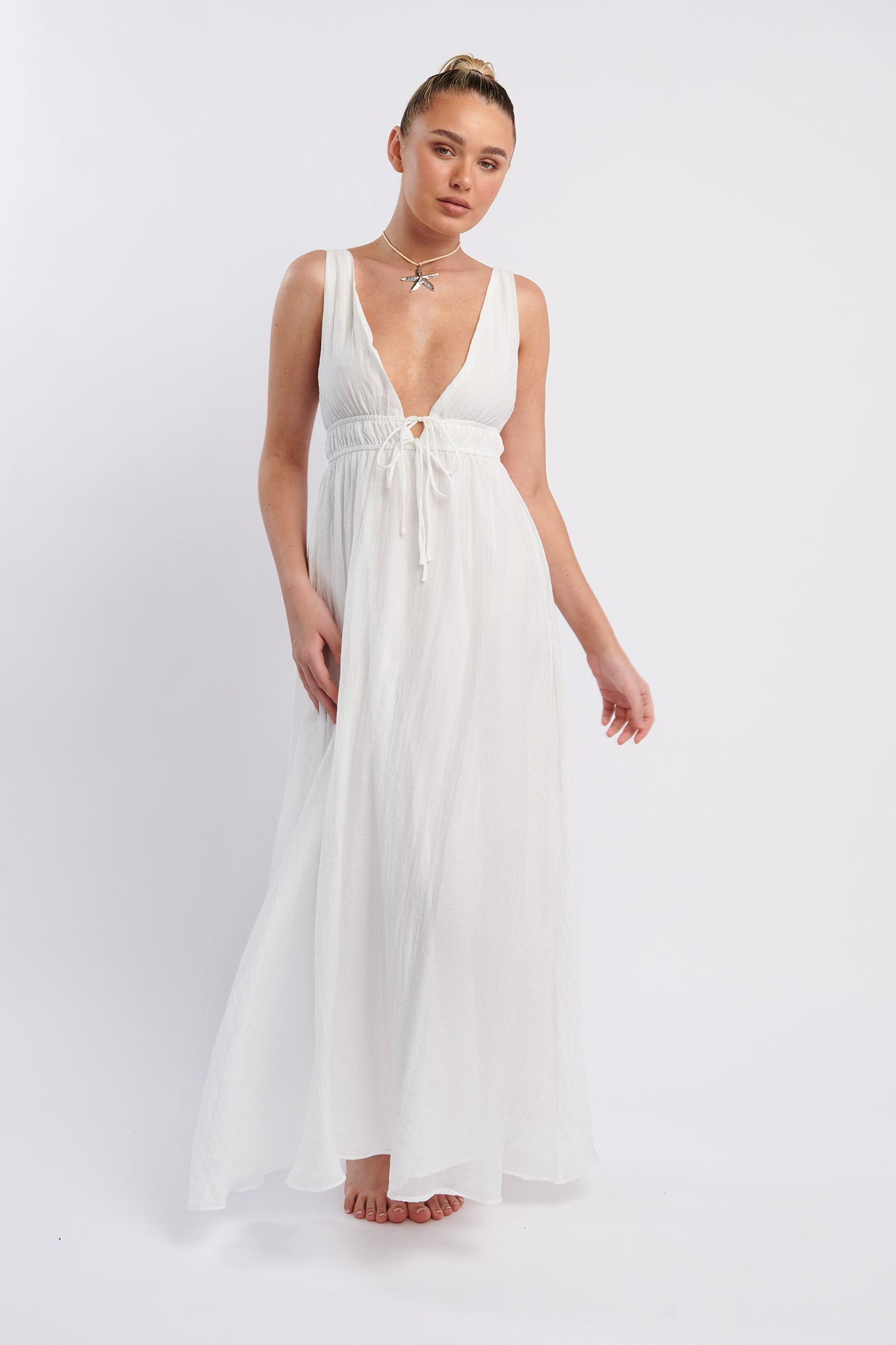 Float through your day in our pretty Kylin maxi dress. Featuring a tied bust, it's perfect for sunny weekends strolling the farmers' markets or coffee dates with your girls. Team it with sandals and a woven tote for a look we are loving.