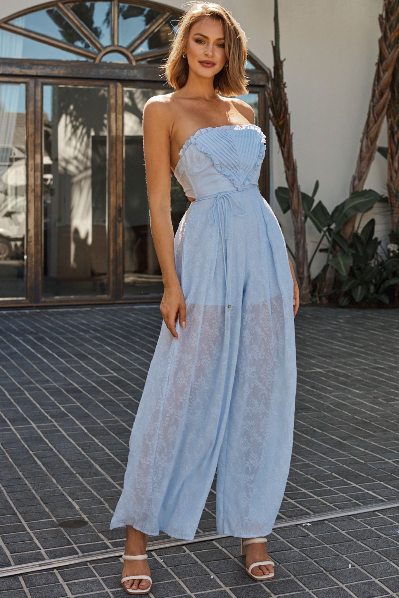 La Galerie Pintuck Pleat Bandeau Jumpsuit Steel Blue
