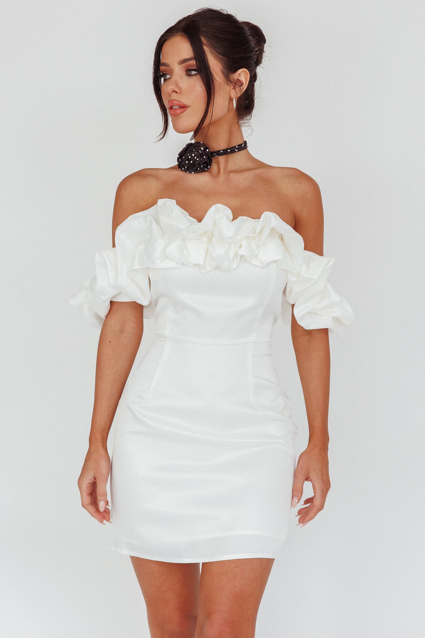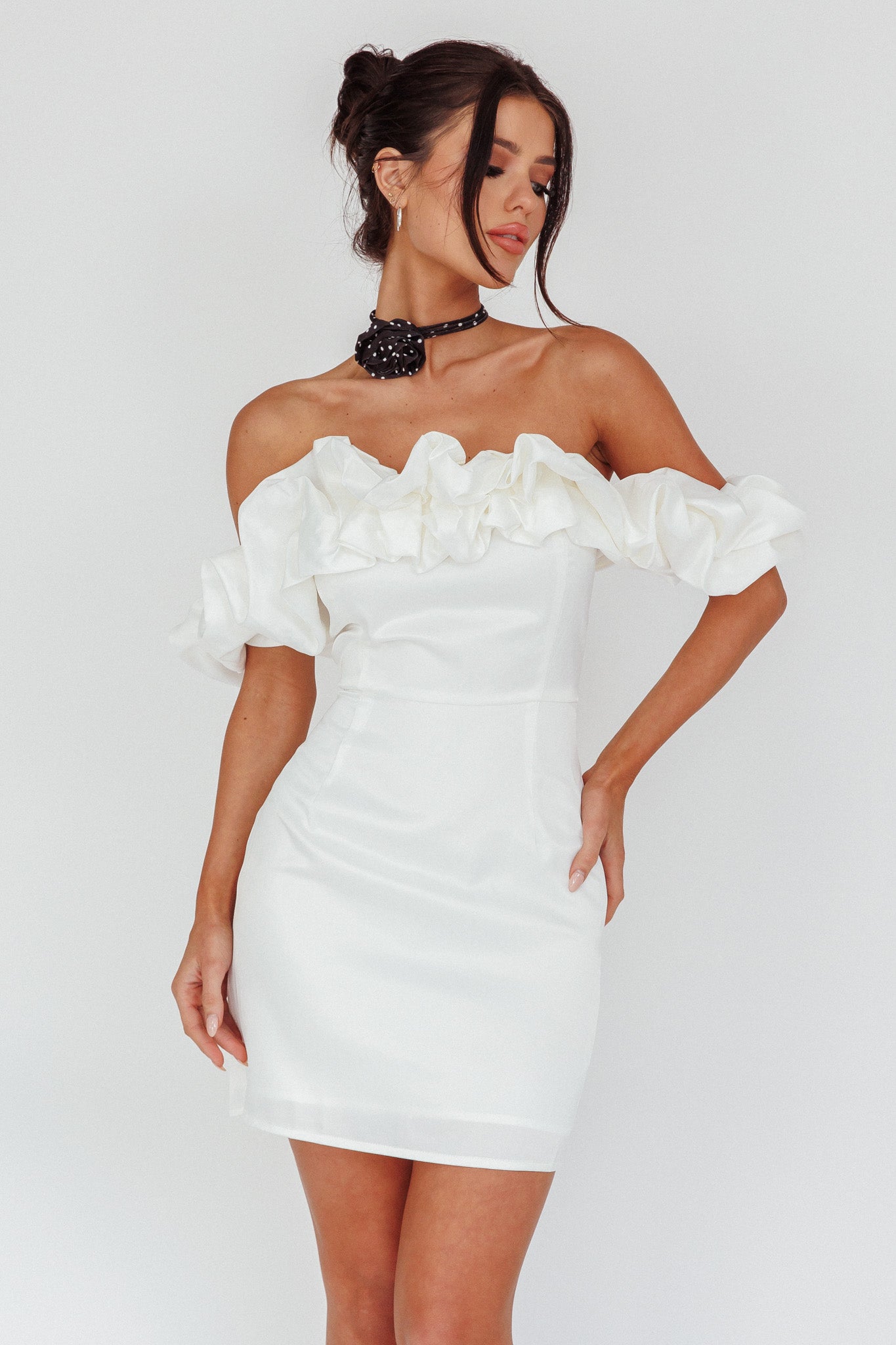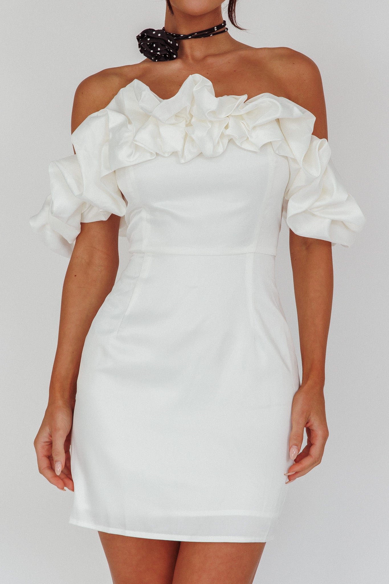 Steal the spotlight in our stunning La Palma mini dress. We are head over heels for that gorgeous, frill-trimmed neckline. Perfect for a bachelorette teamed with white stilettos and a clutch.