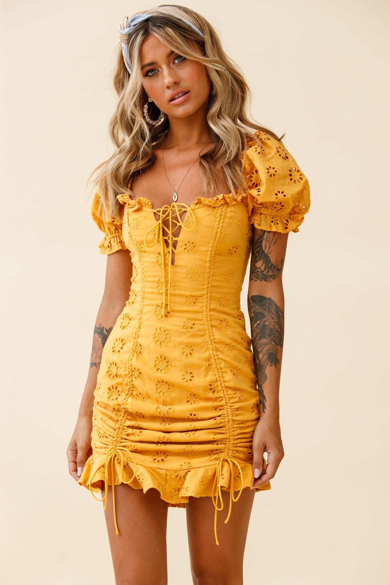 Howdy, pretty lady! Girl, you're stealing ALL the hearts in our La Quinta dress. It's just the right mix of sweet and sexy and it's sure to get you noticed. We are in love with those milkmaid sleeves and drawstring details. Perfect for a flirty date with that cute country boy you've had your eye on! Team it with tan western boots and a basket bag for a super hot look.