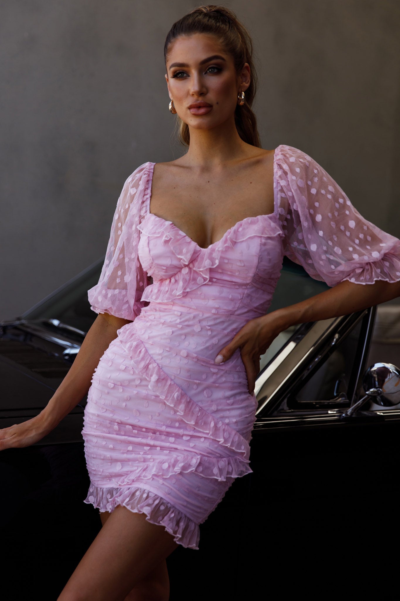 You'll be livin' la vida loca in this super cute dress. We are obsessed with the polka dot mesh overlay and adorable frill trim. Perfect for a bachelorette or an extra special birthday party. Team it with nude, strappy heels and a clutch for a jaw-dropping look.