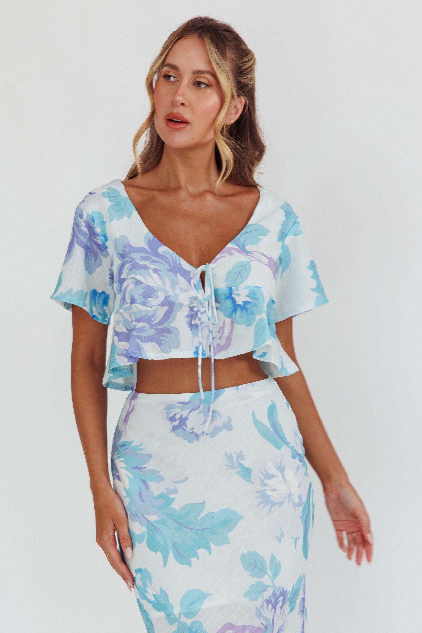 Hello, gorgeous! You'll feel like a princess in our pretty La Vie crop. We are head over heels for its feminine floral print and cute, tied front closure. It's perfect for Sunday brunch with your besties teamed with kitten heels and its matching maxi skirt for an unforgettable look.