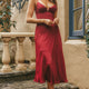 Lake Como Fitted Bodice Cami Strap Midi Dress Cherry