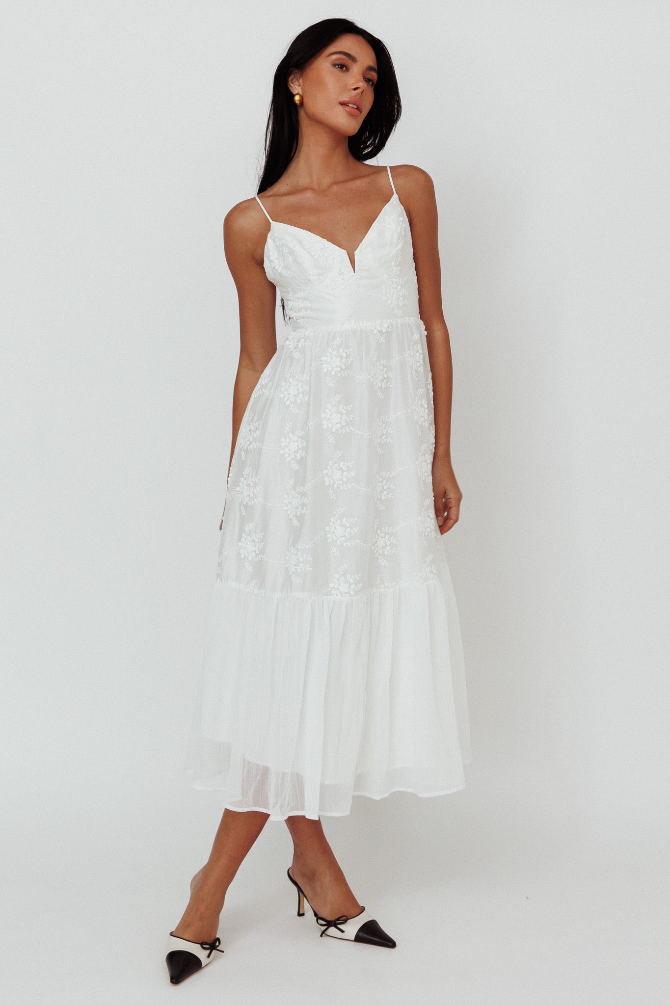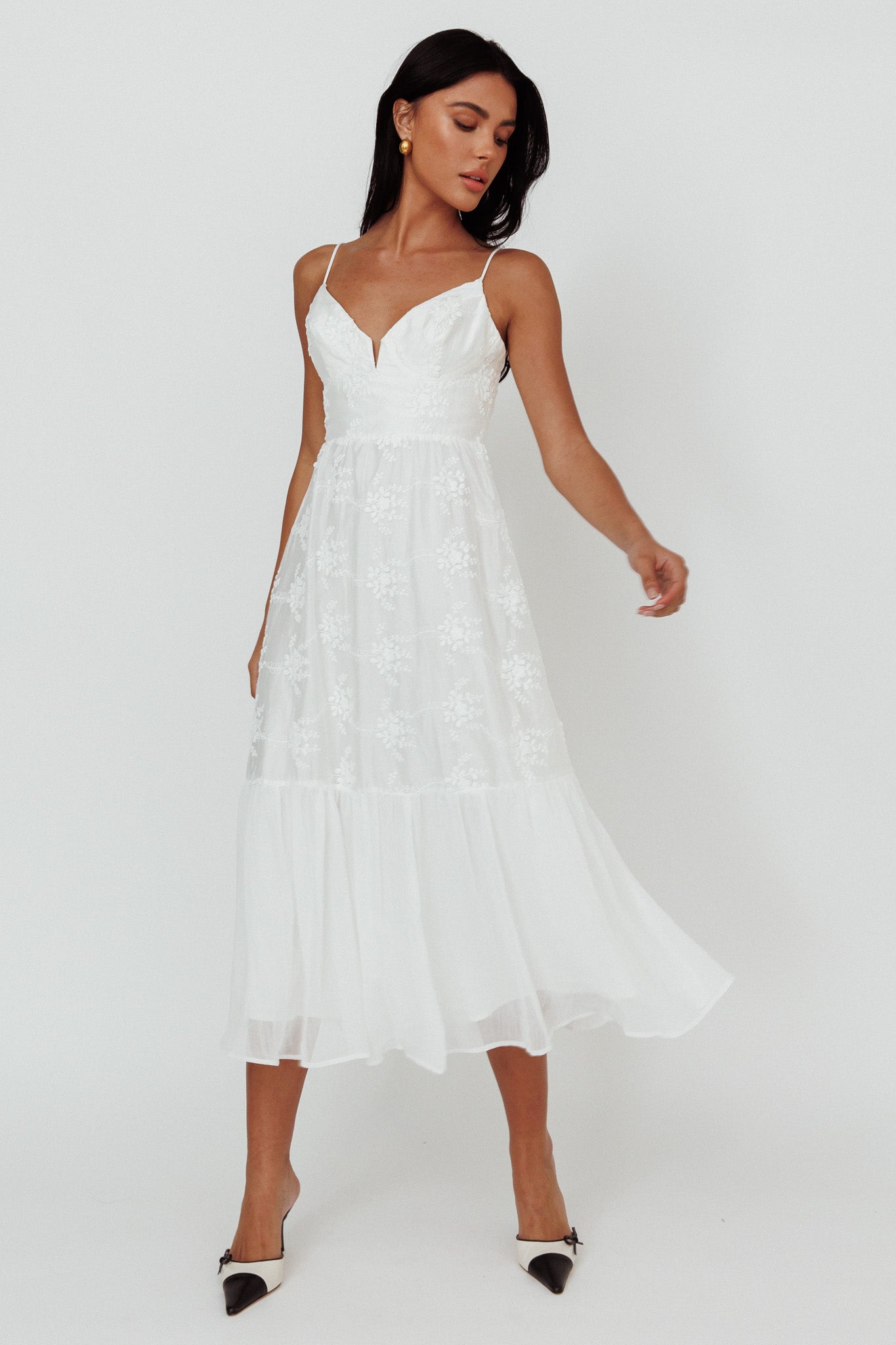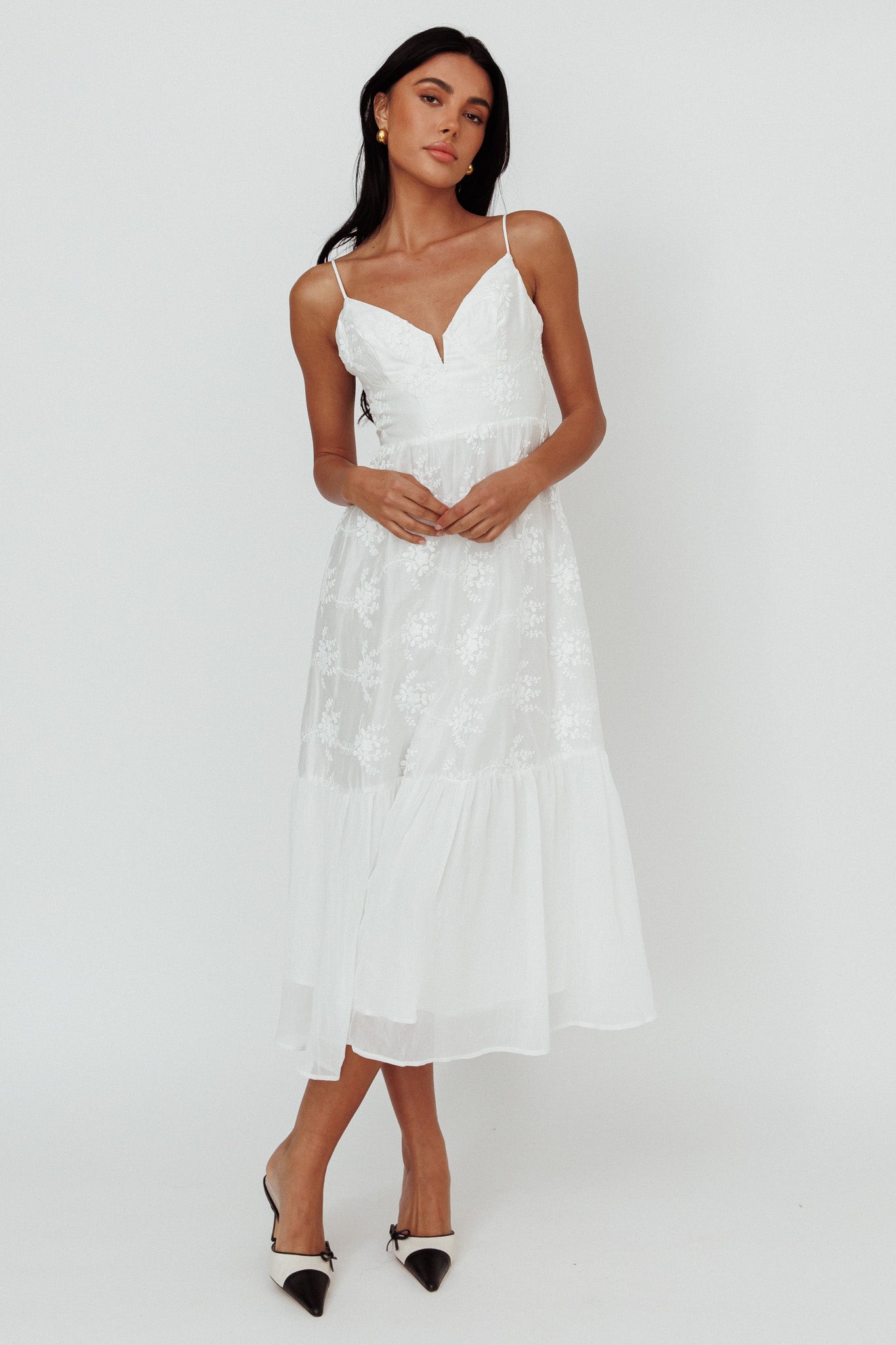 Heads will turn when you walk by in our gorgeous Lake Como midi dress. We are obsessed with its pretty floral embroidery and flounce hem. The perfect choice for a date night or brunch with your girls. Pair it with some tan mules and get ready to be flooded with compliments.