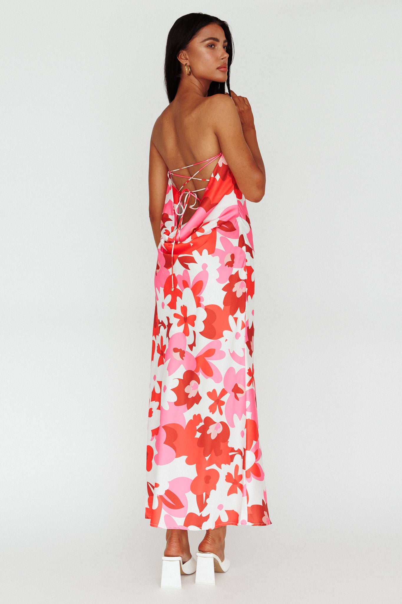 Latisha Strappy Cowl Back Midi Dress Floral Red