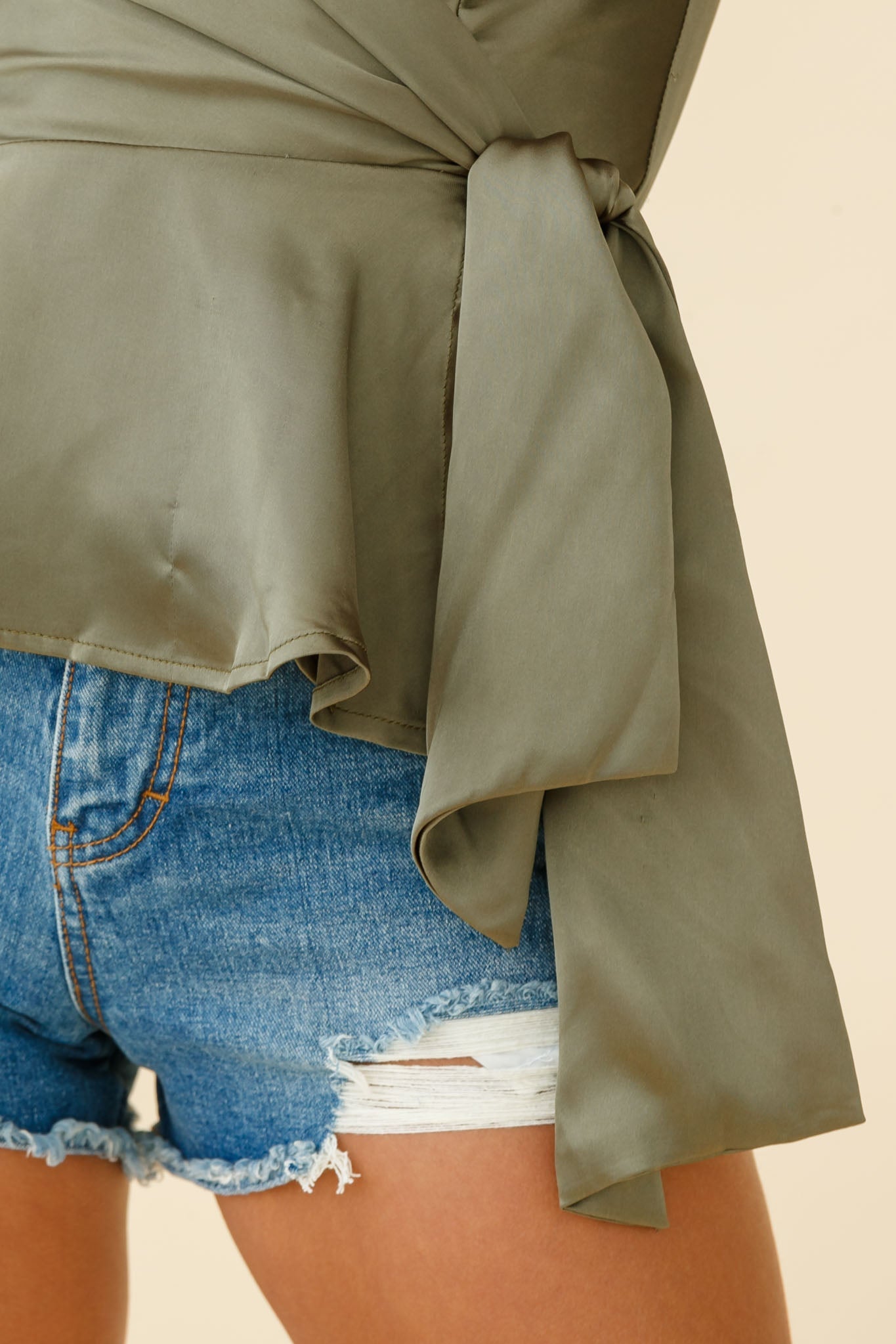 Laural Side-Tie Wrap Top Khaki
