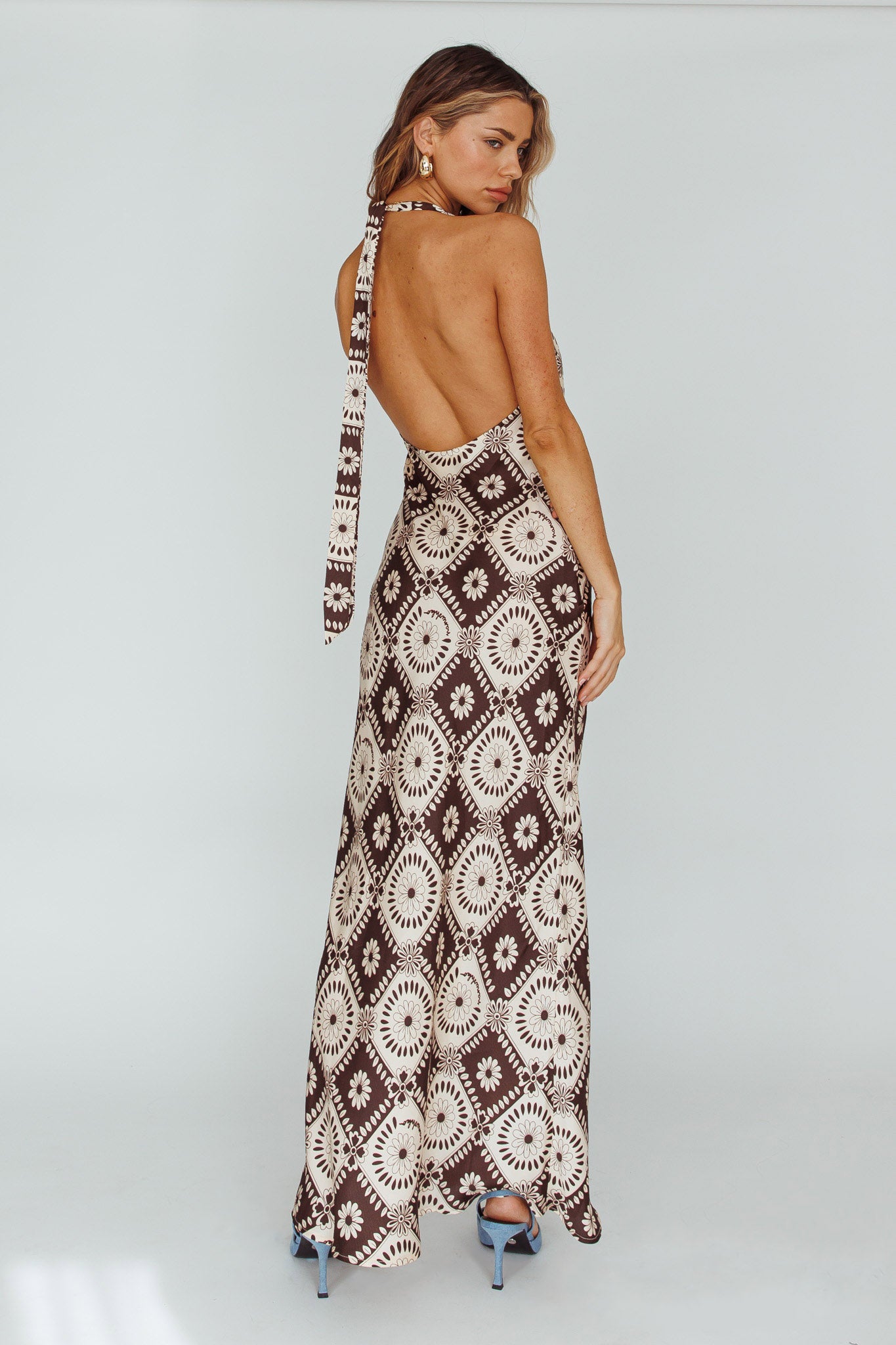 Lavara Halterneck Midi Dress Floral Chocolate