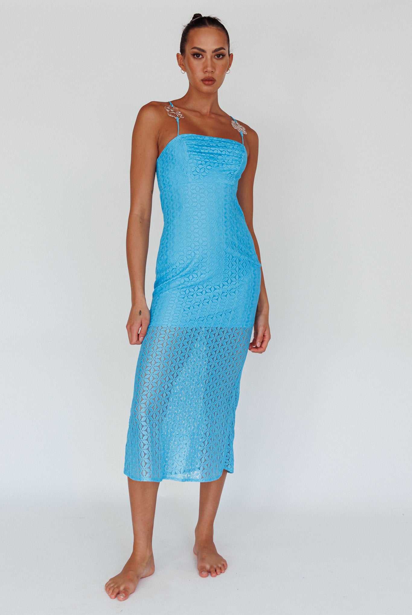 Lazy Daisy Flower Strap Midi Dress Blue