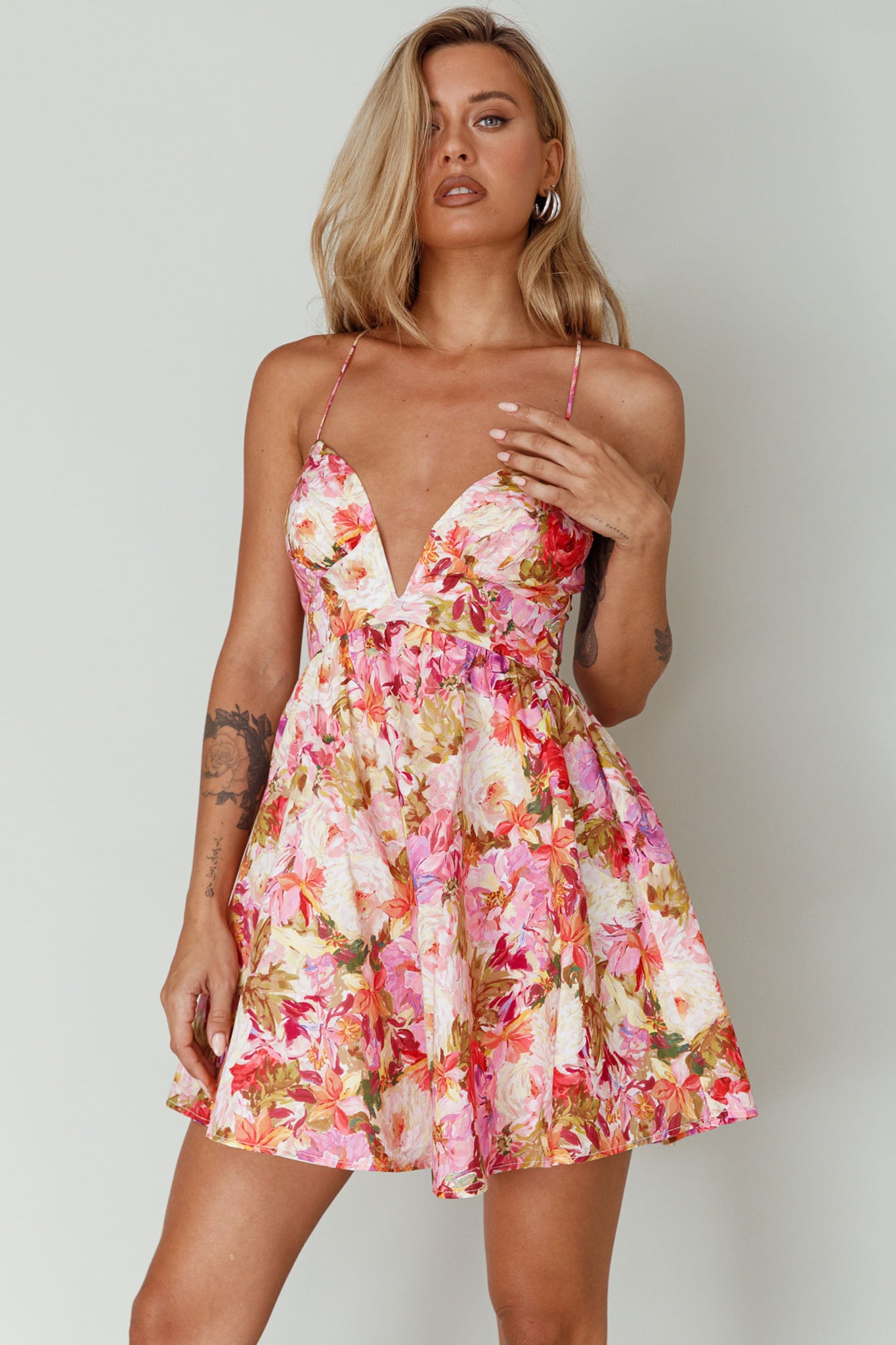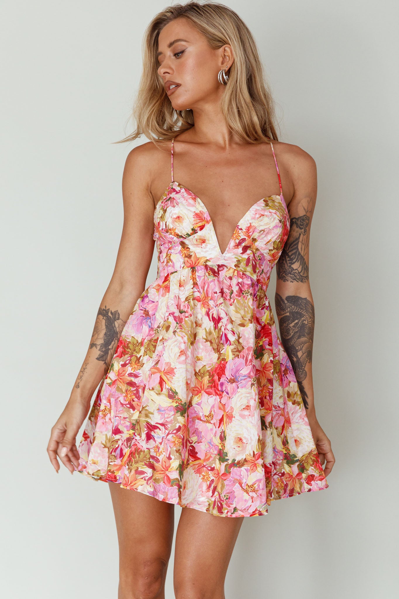 Sweep them off their feet in our gorgeous Le Jardins mini dress. Featuring a deep V-neckline and A-line skirt. Perfect for a wedding or champagne brunches with your besties. Team it with pearl accent jewelry and tie-up heels for an elegant look we've fallen in love with.