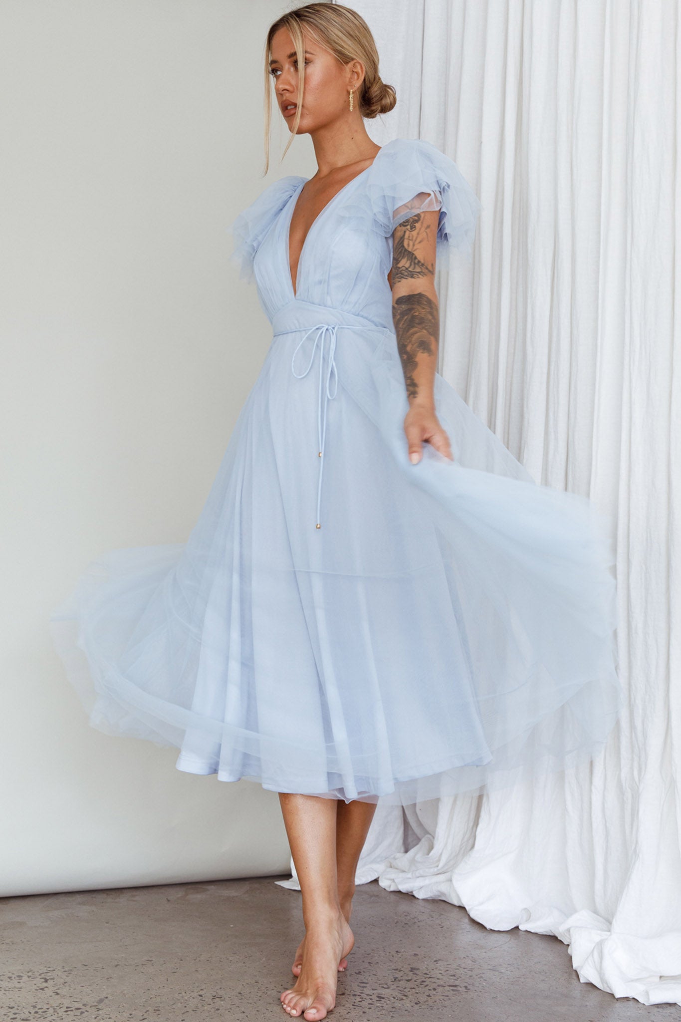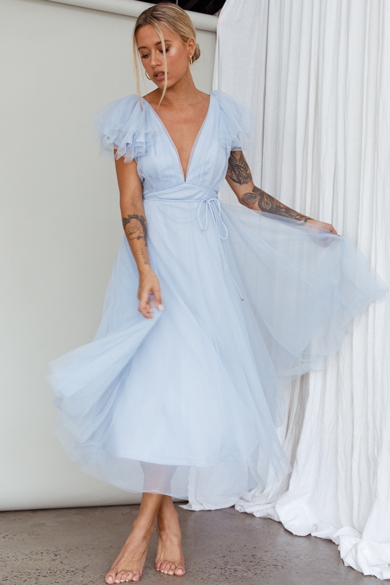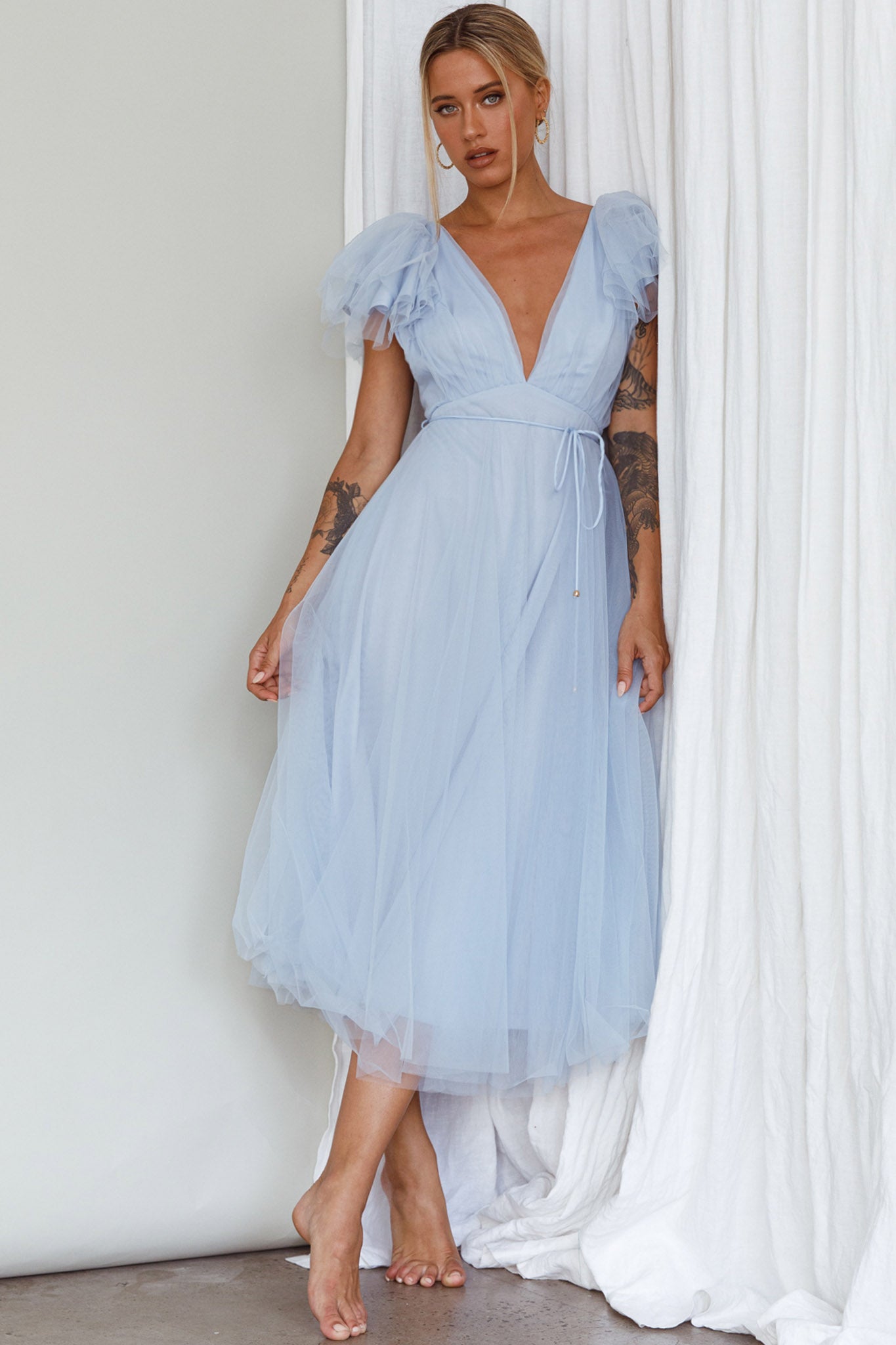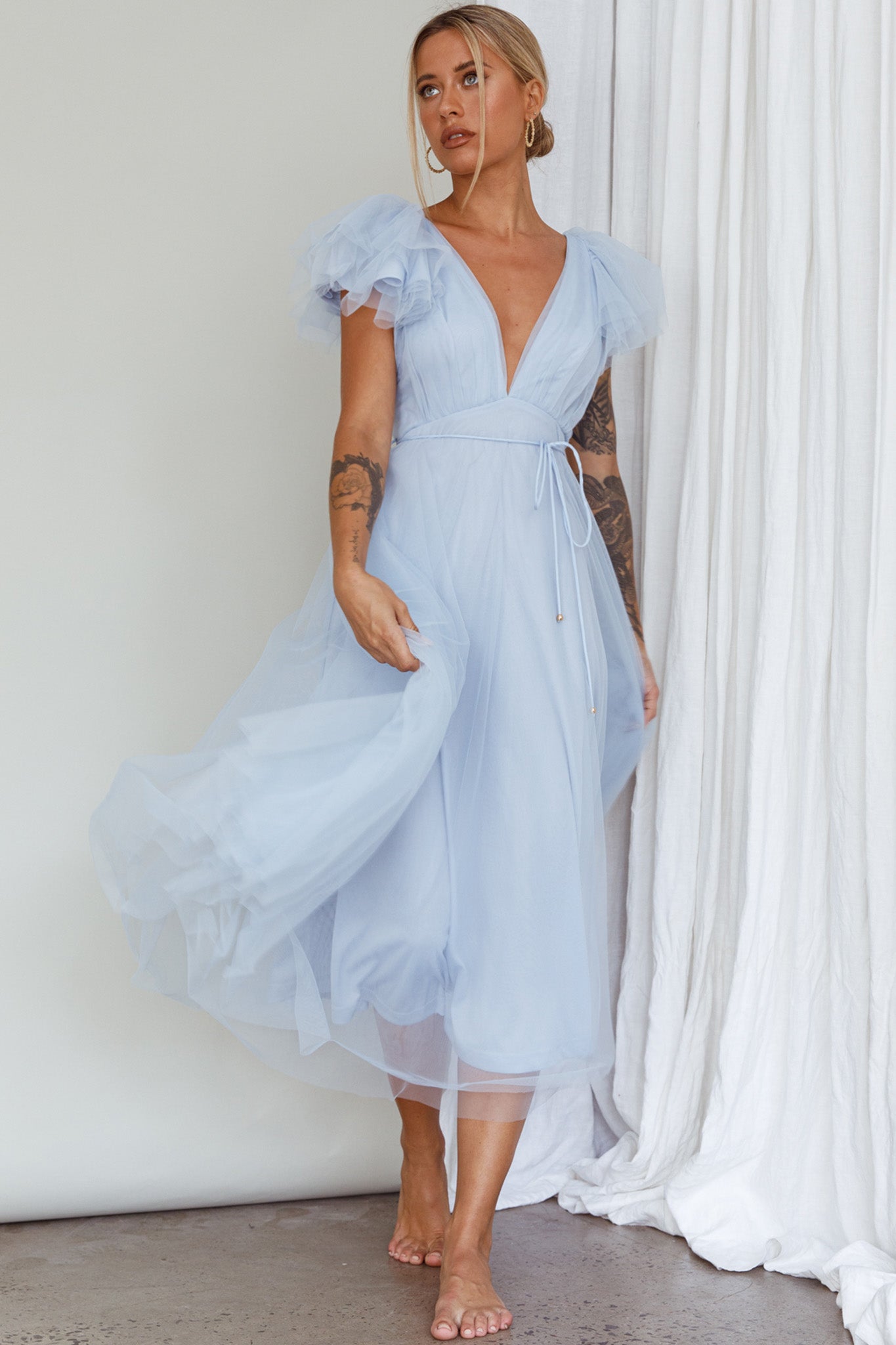 Hello, princess! You'll feel like royalty in our gorgeous Leap Of Faith midi dress. Featuring a tulle-mesh overlay that floats as you walk and pretty frill accents on the shoulders. It's perfect for bridal events or a special occasion. Team it with diamante heels and a clutch for an unforgettable look.