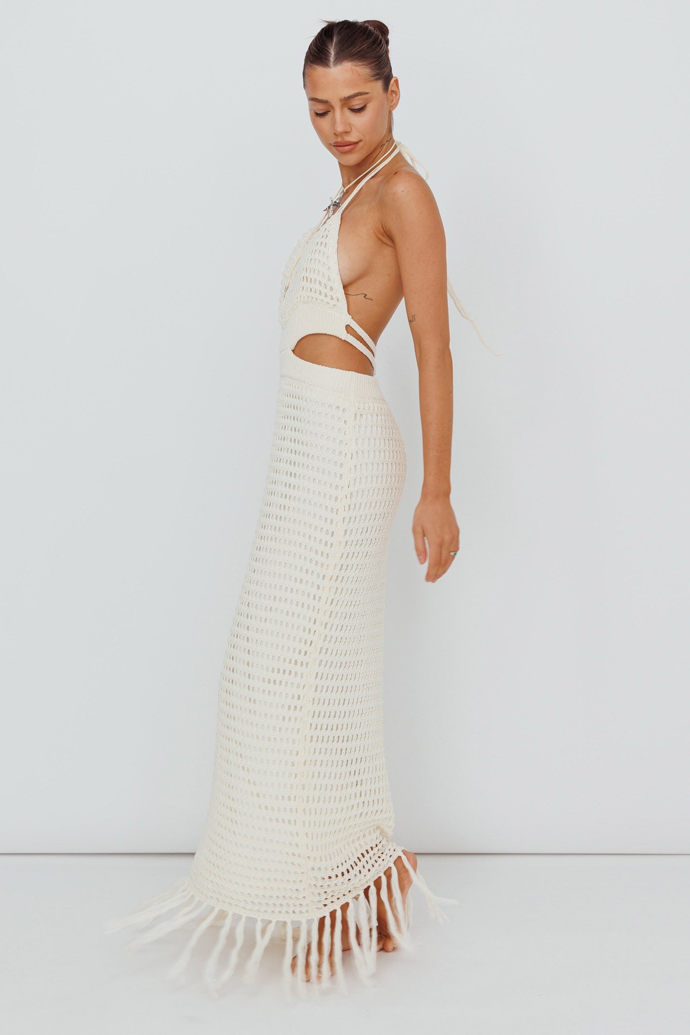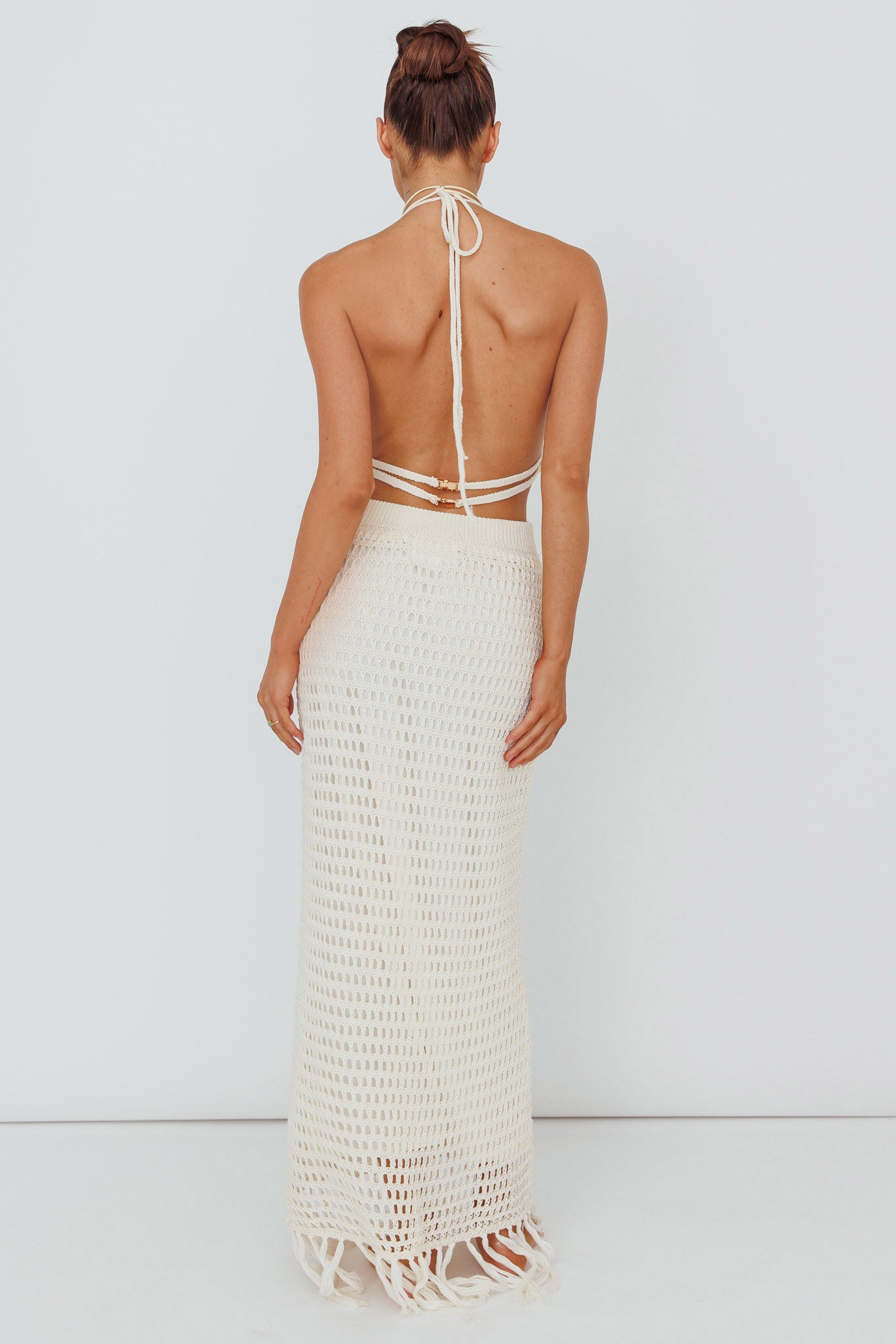 We are totally crushing on our gorgeous Lelei maxi dress. With its crochet knit fabric and open back, this one is sure to turn heads. Perfect for Friday nights at your fave rooftop spot. Team it with hessian wedges and a tote for a beach-chic look we are loving.