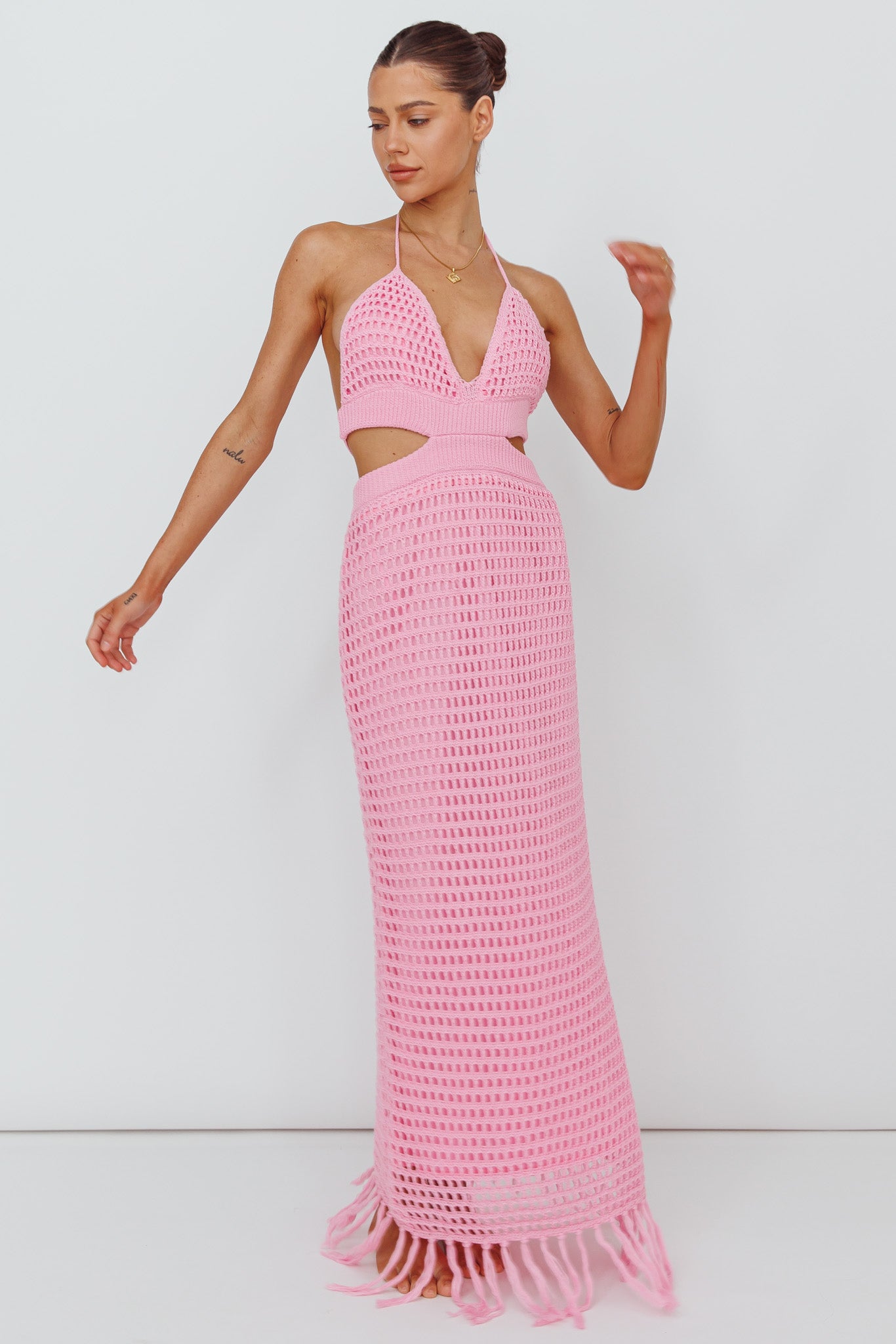 We are totally crushing on our gorgeous Lelei maxi dress. With its crochet knit fabric and open back, this one is sure to turn heads. Perfect for Friday nights at your fave rooftop spot. Team it with hessian wedges and a tote for a beach-chic look we are loving.