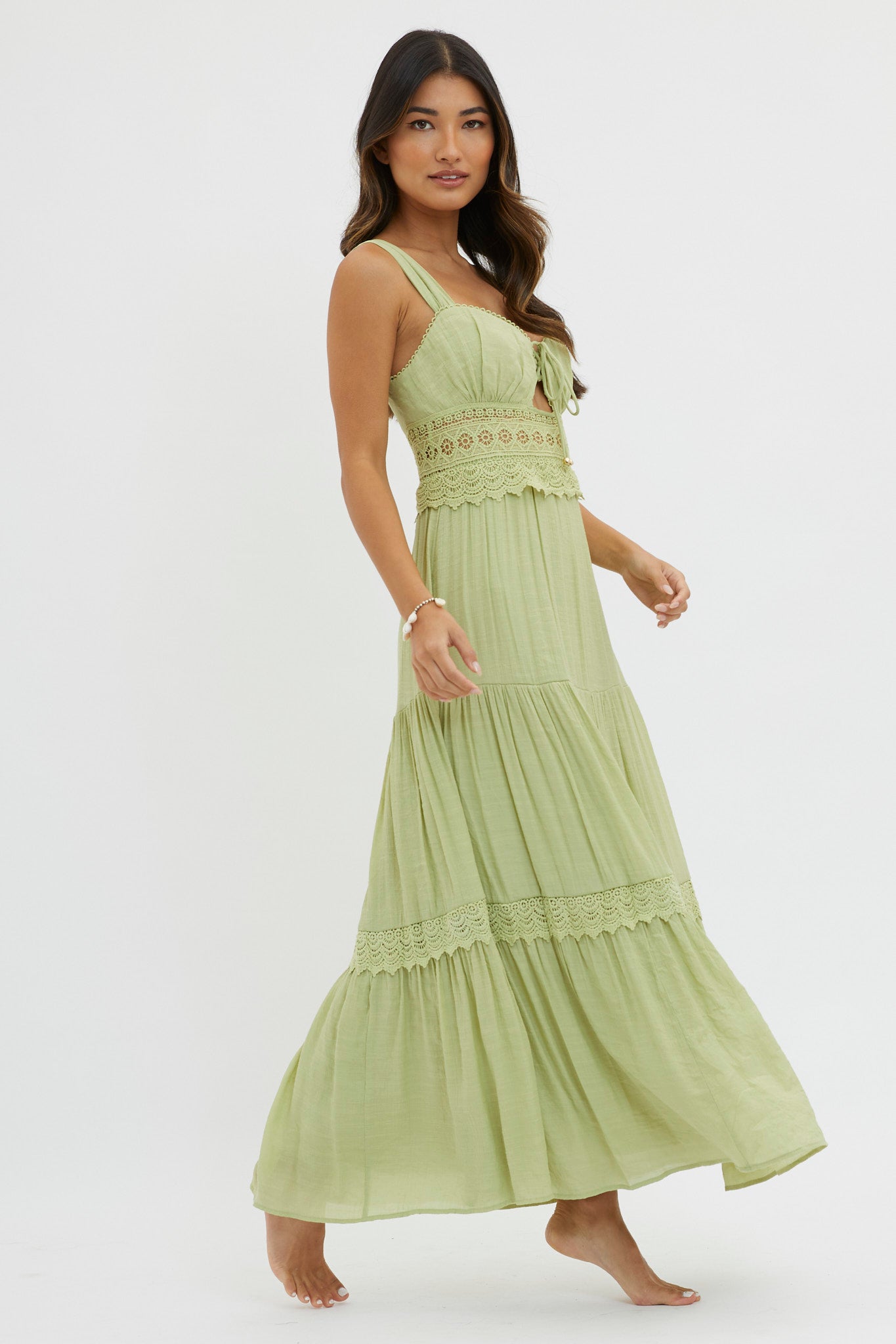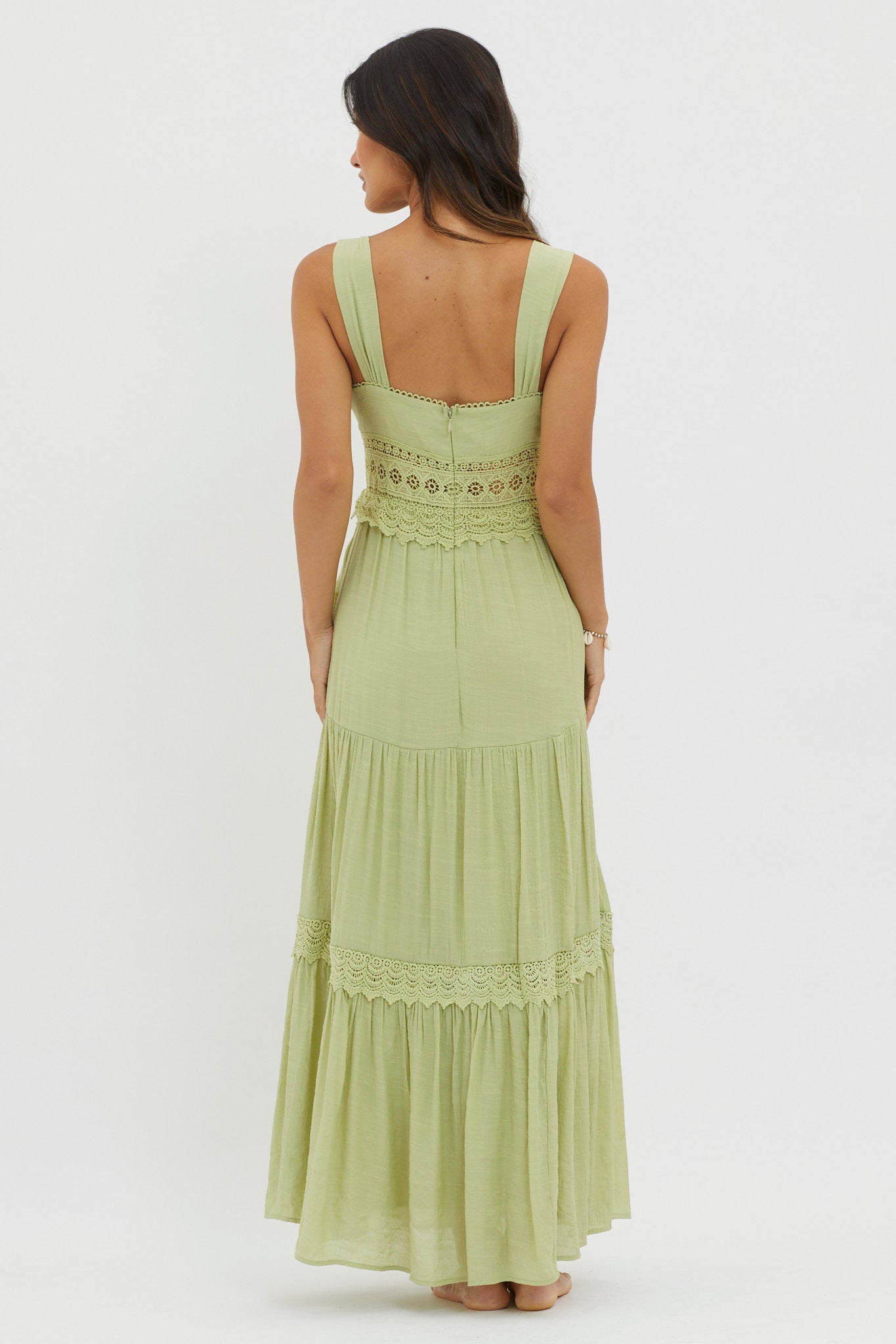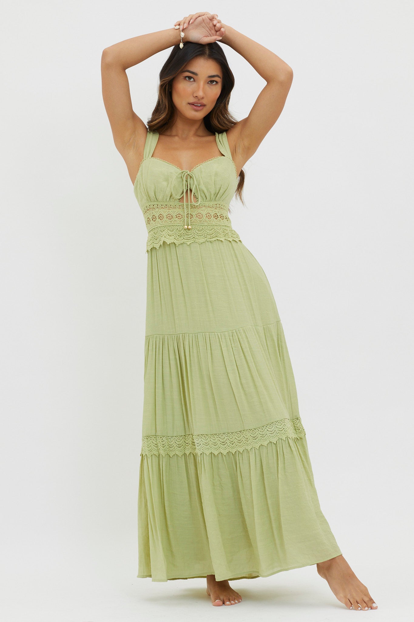Float through your day in our pretty Libby maxi dress. It features crochet lace detail in the waist and a tie in the bust. Perfect for lazy Sundays strolling your fave vintage markets. Team it with sandals and a straw tote for a chic look.
