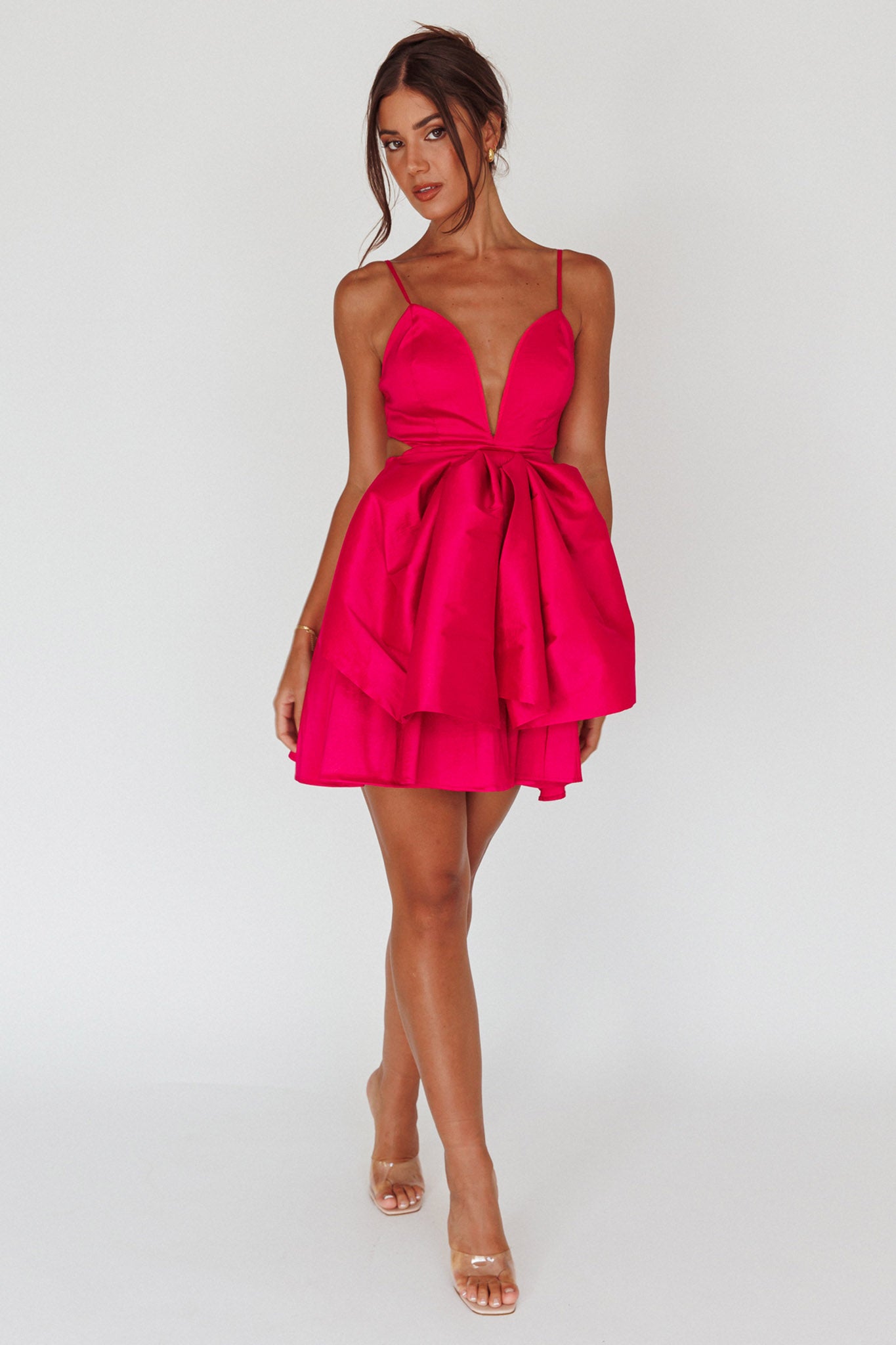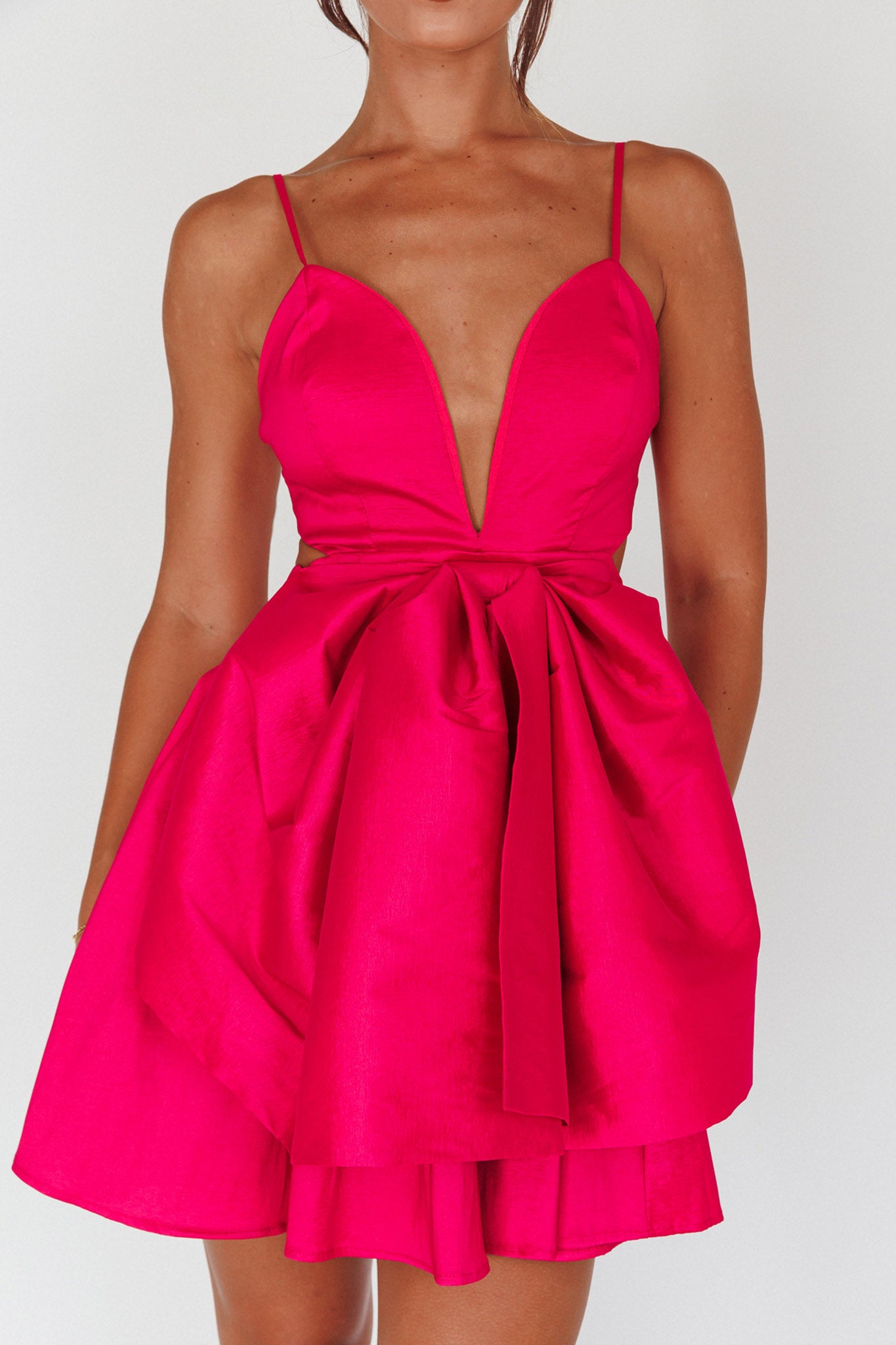 Life Is Rosy Large Bow Mini Dress Fuchsia