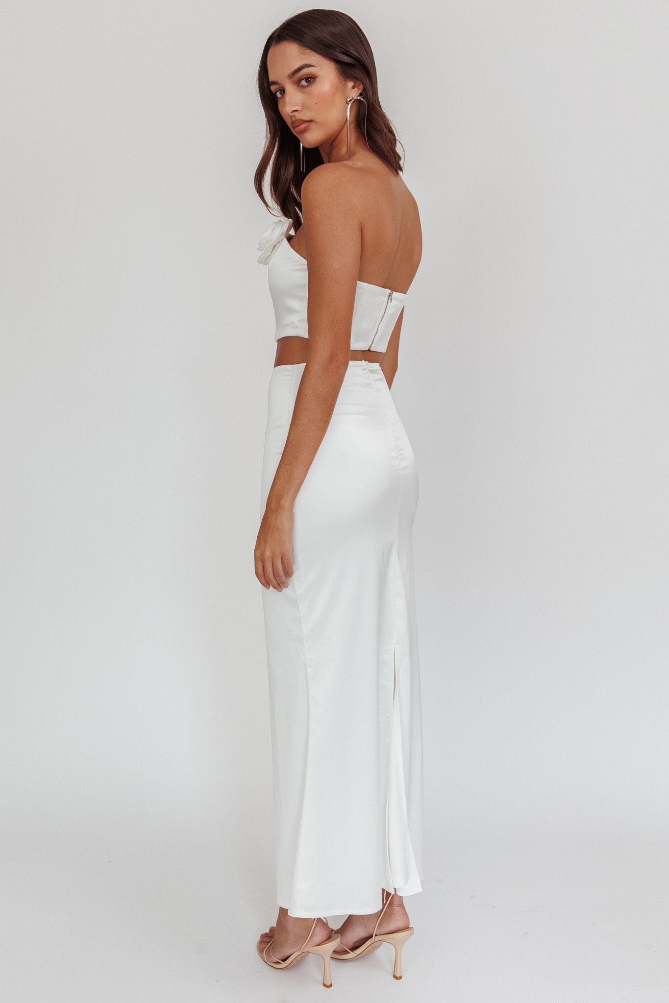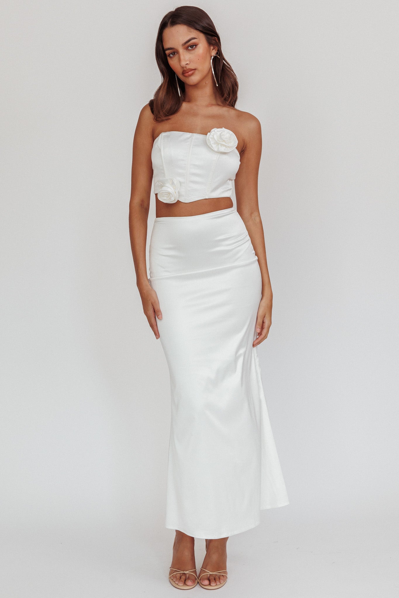 You'll have them lost for words in our gorgeous Like A Dove skirt. It features a maxi length and stunning satin fabric. It's perfect for bridal events or graduation! Team it with its matching top and nude heels for a look that will make jaws drop.