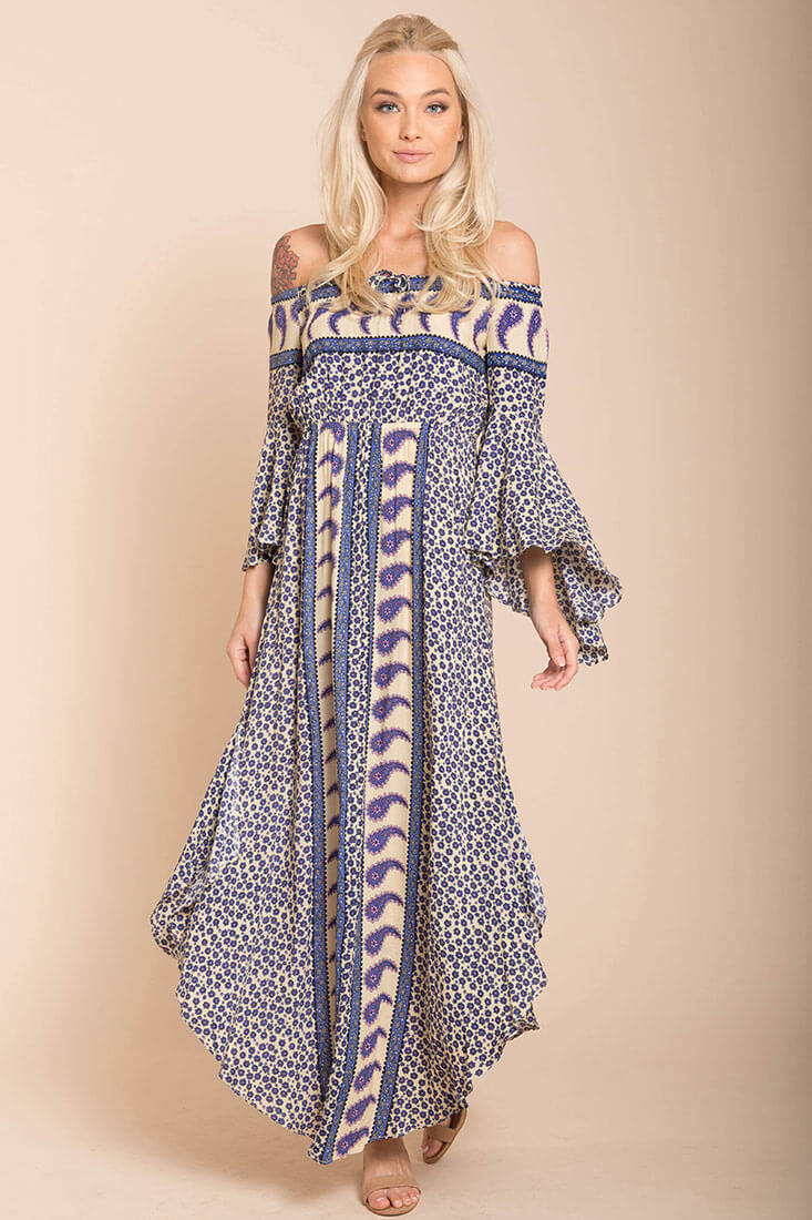 This paisley off the shoulder number will work perfectly at that upcoming picnic date! Don't forget the Chardonnay! Wear your hair in cute french braids and pair with sleek, smooth sandals.