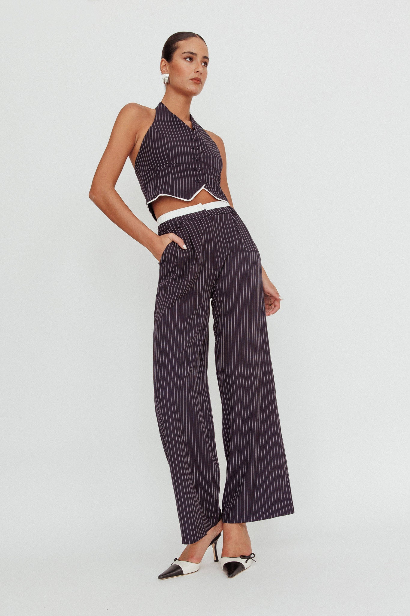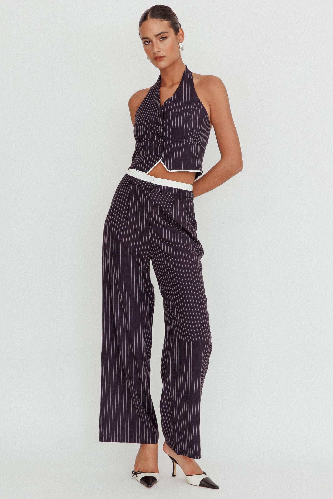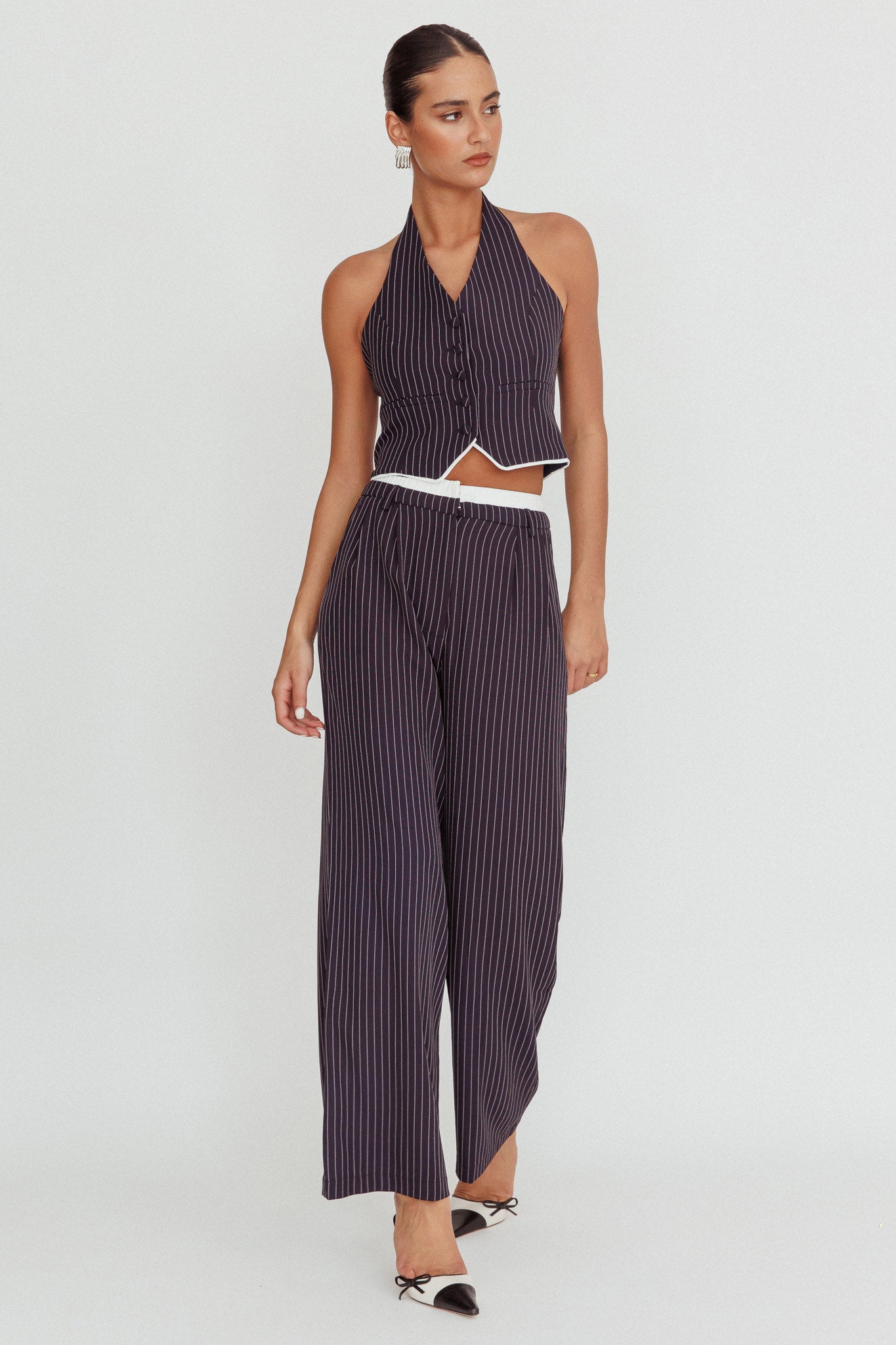 Lilija Pinstripe Double Waistband Wide-Leg Pants Navy
