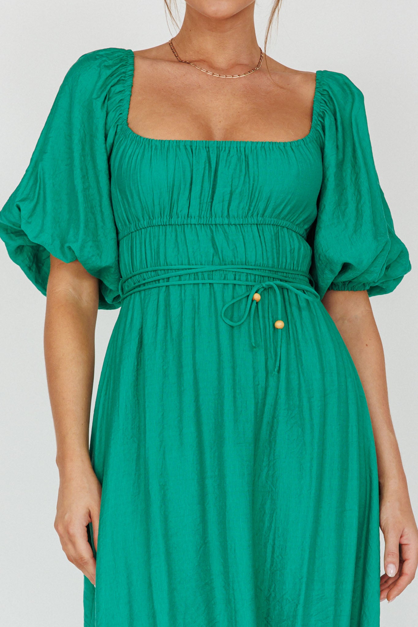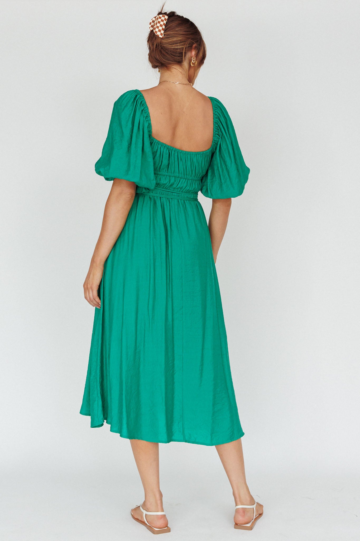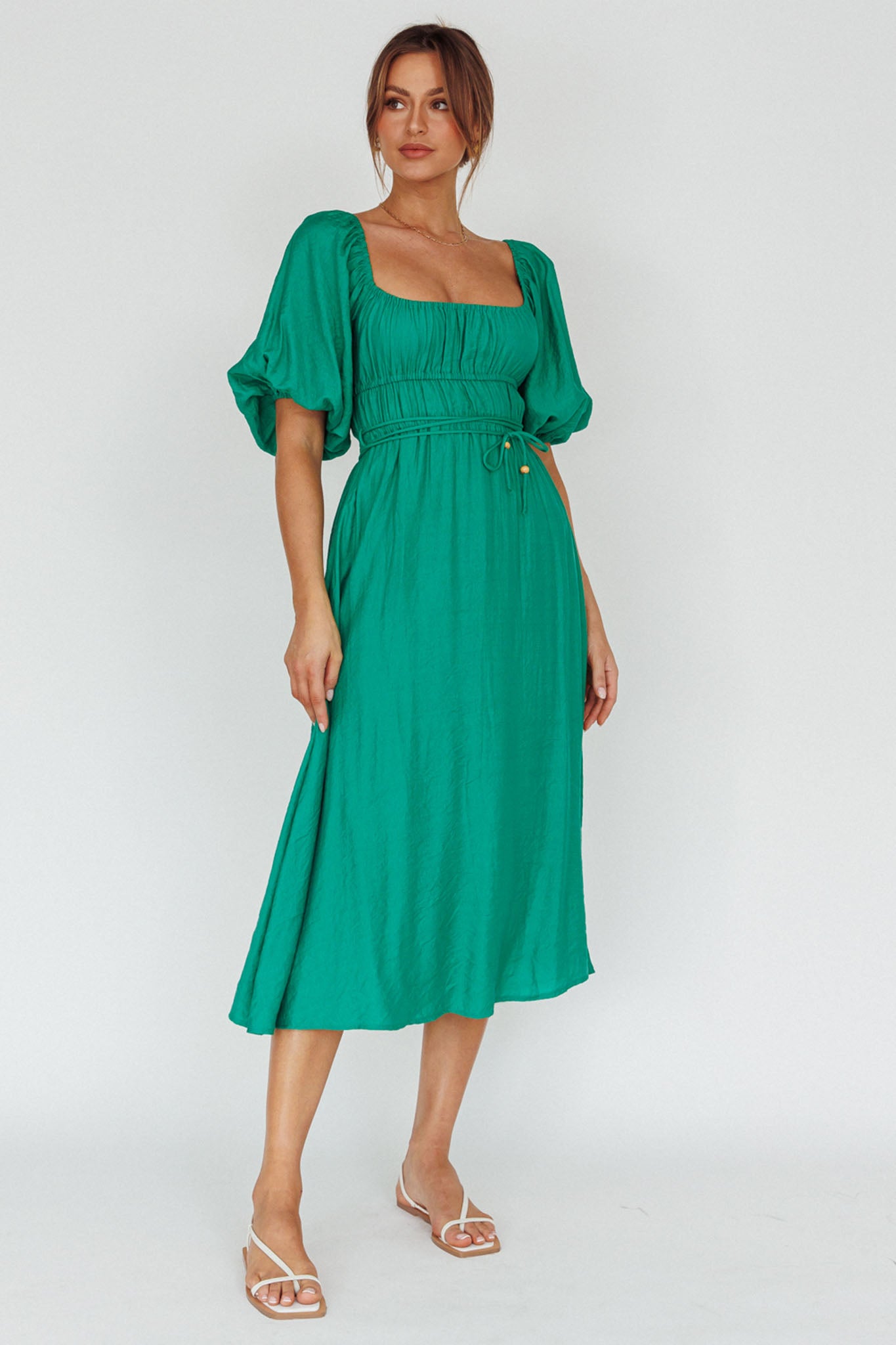 Lille Puff Sleeve Midi Dress Green