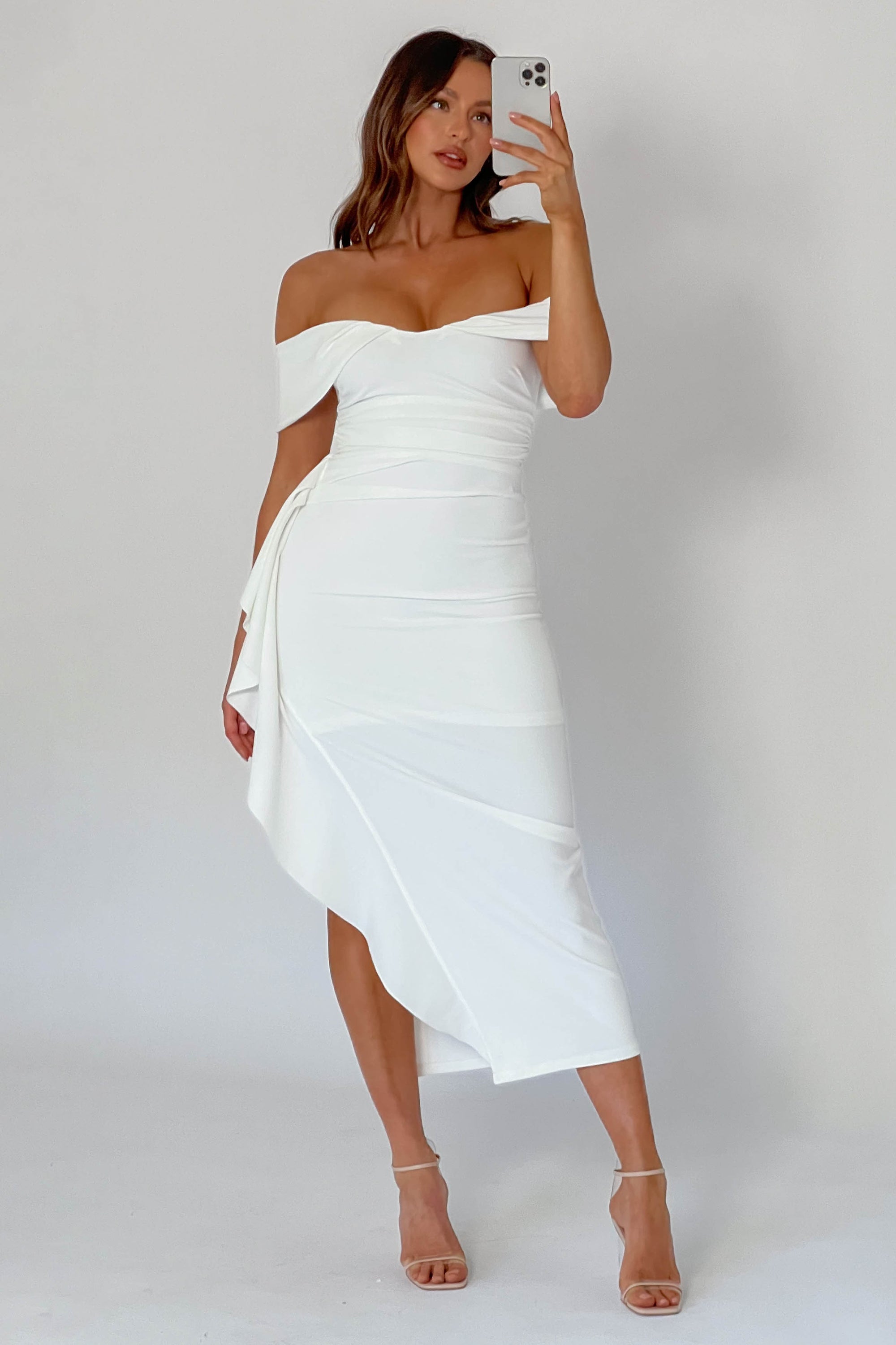 Lillianne Off-Shoulder Side Ruffle Maxi Dress White