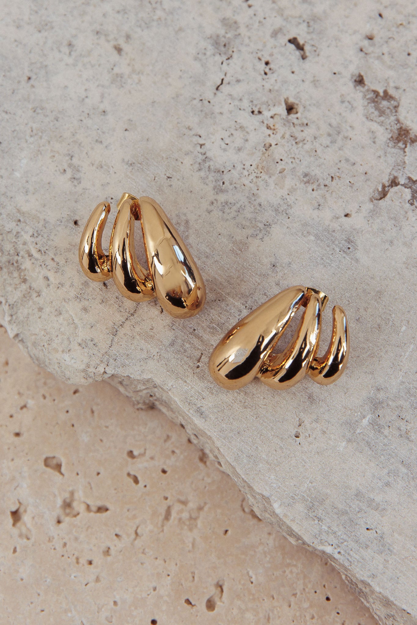 Elevate your look with our stunning Lilly earrings. They feature a unique, irregular shape and ridged finish. They're perfect for a date night or a glam event. Team them with our Damsel dress for a look that will make jaws drop.