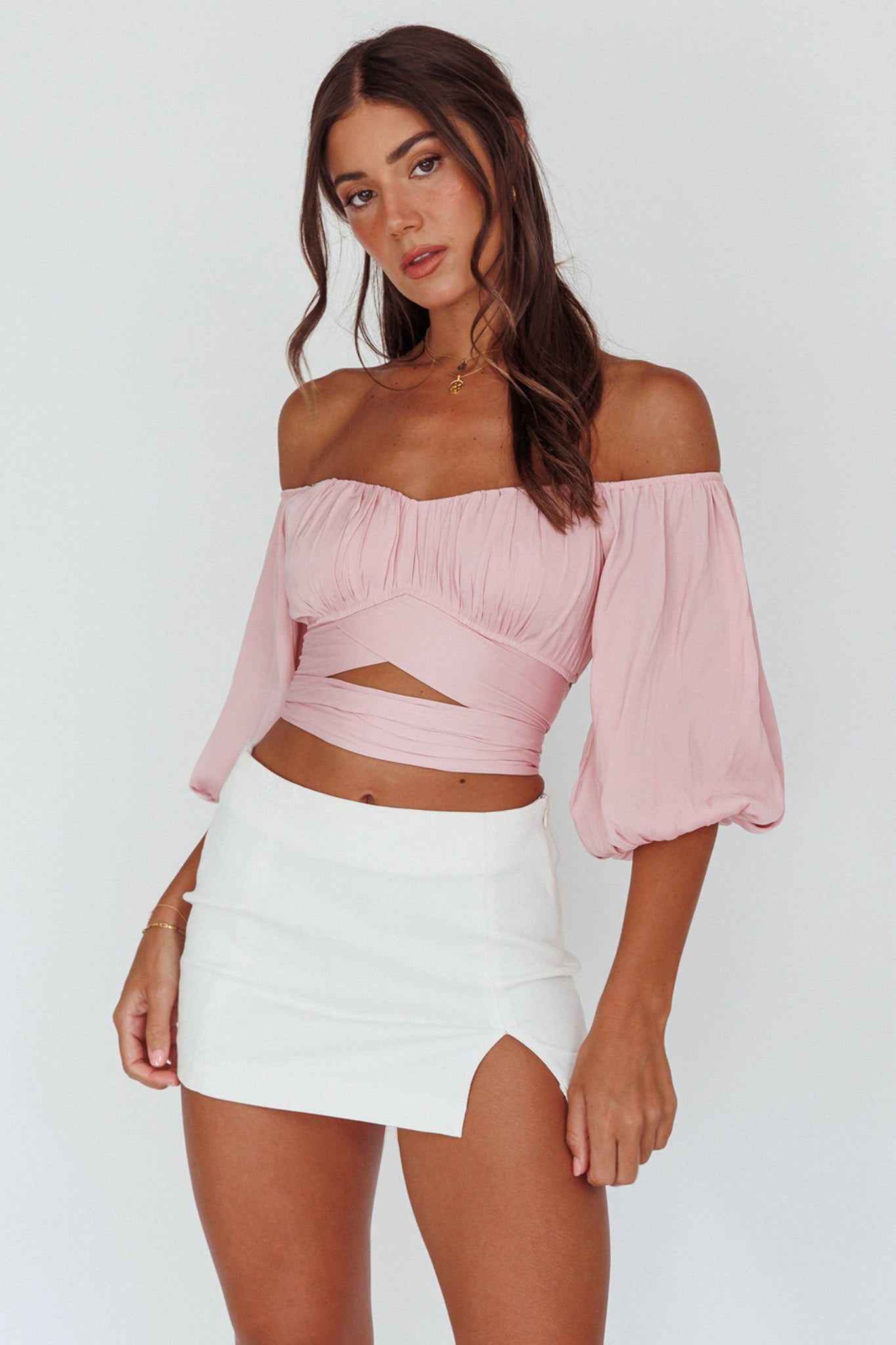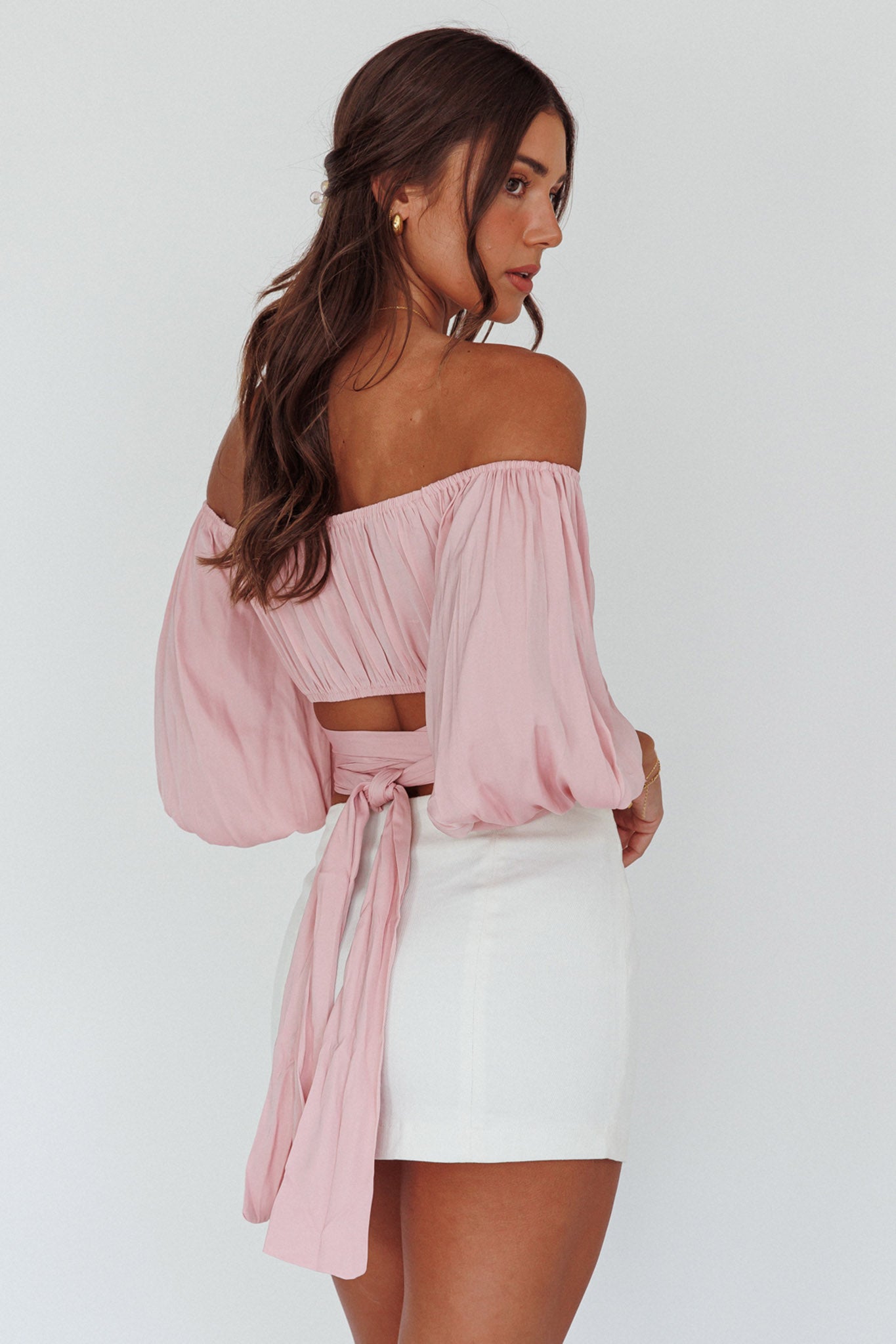 Linka Off-Shoulder Half Sleeve Tie-Back Crop Top Blush