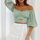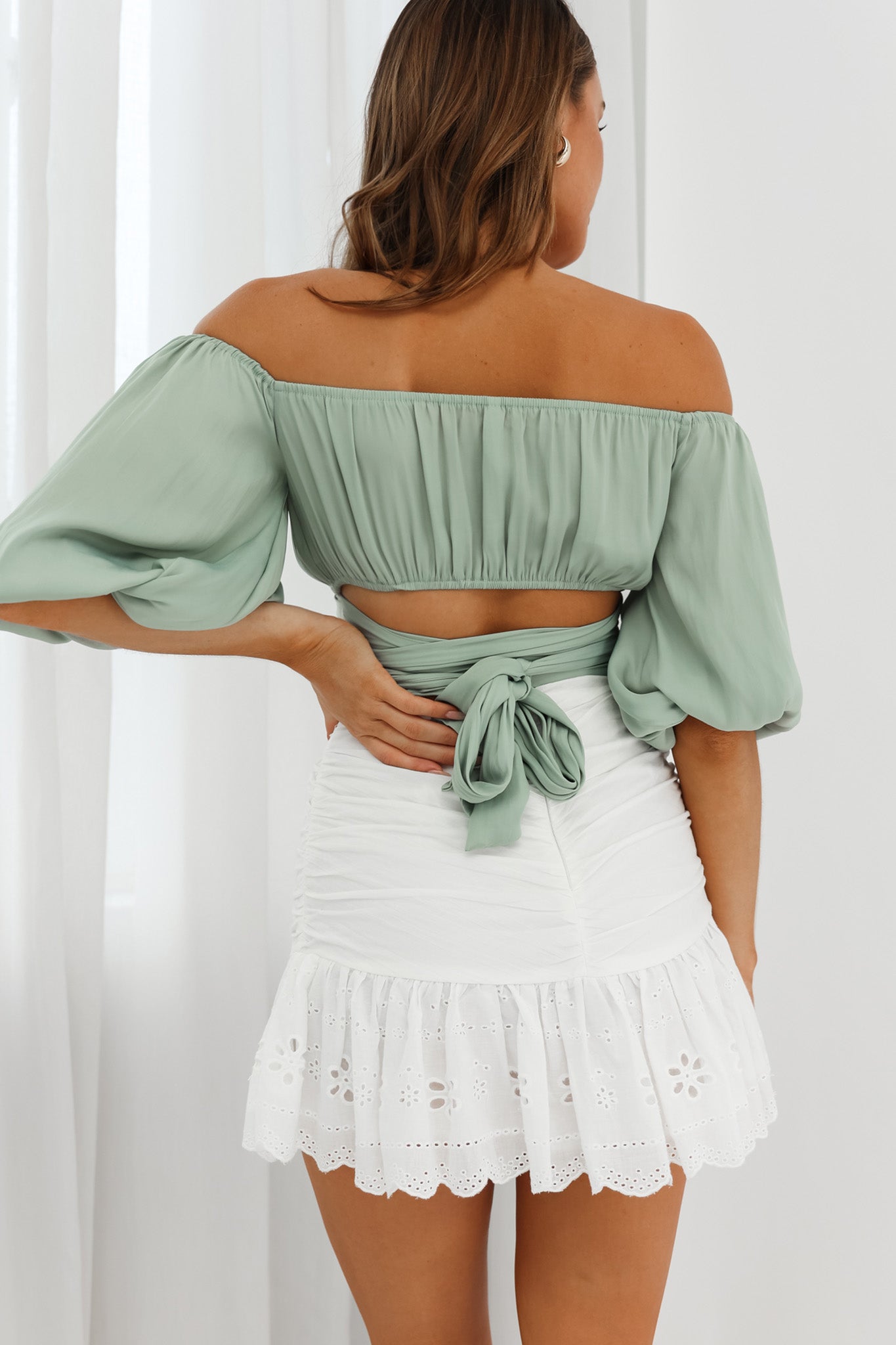 Linka Off-Shoulder Half Sleeve Tie-Back Crop Top Pistachio