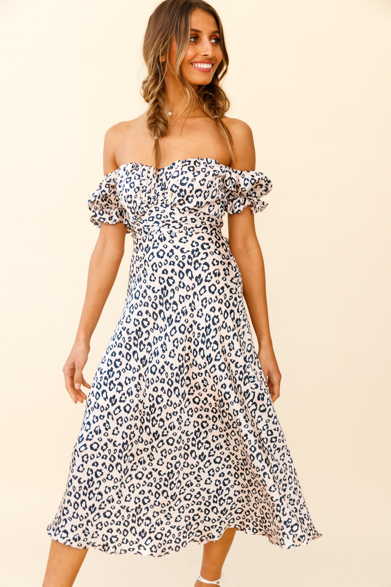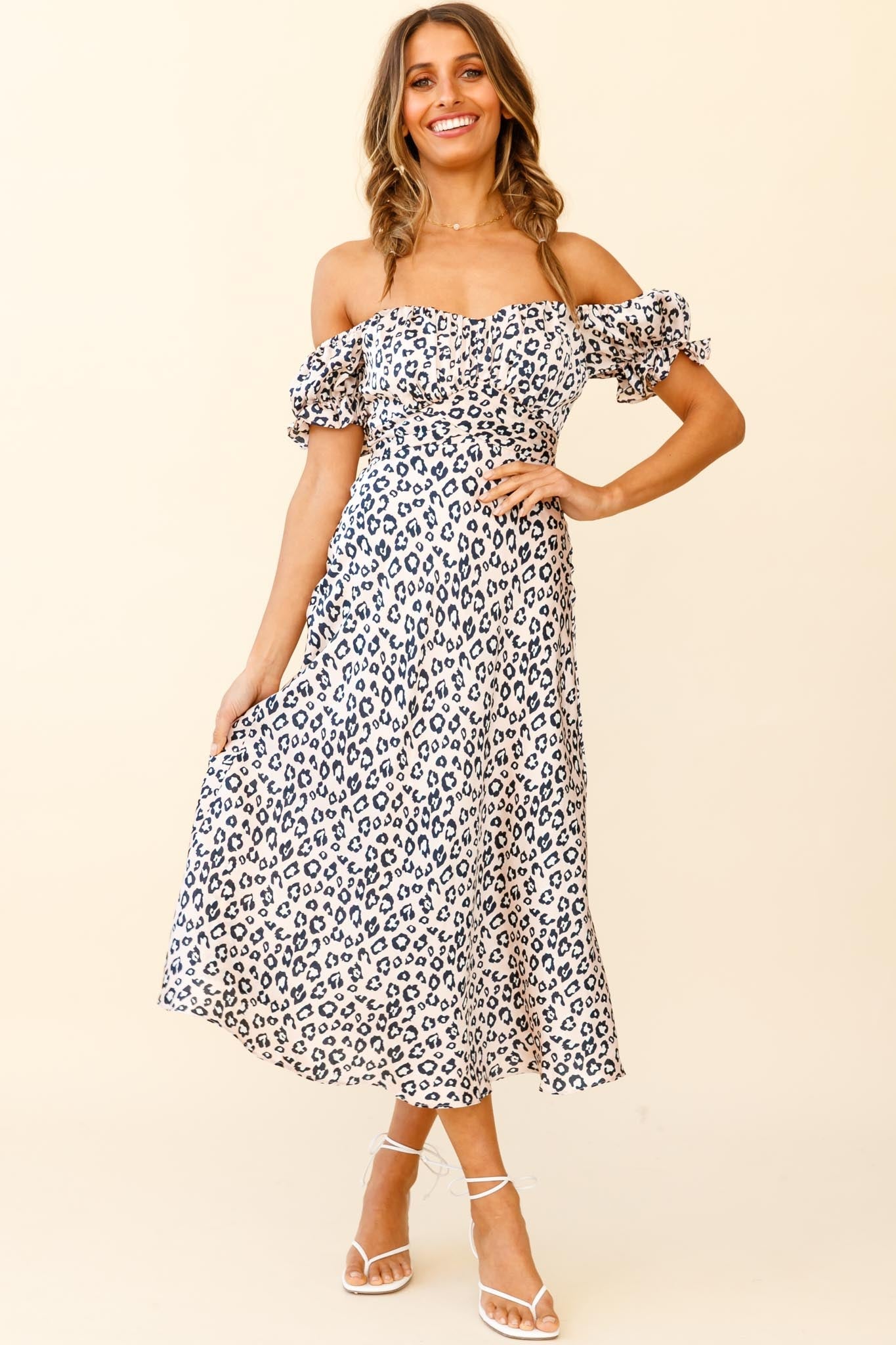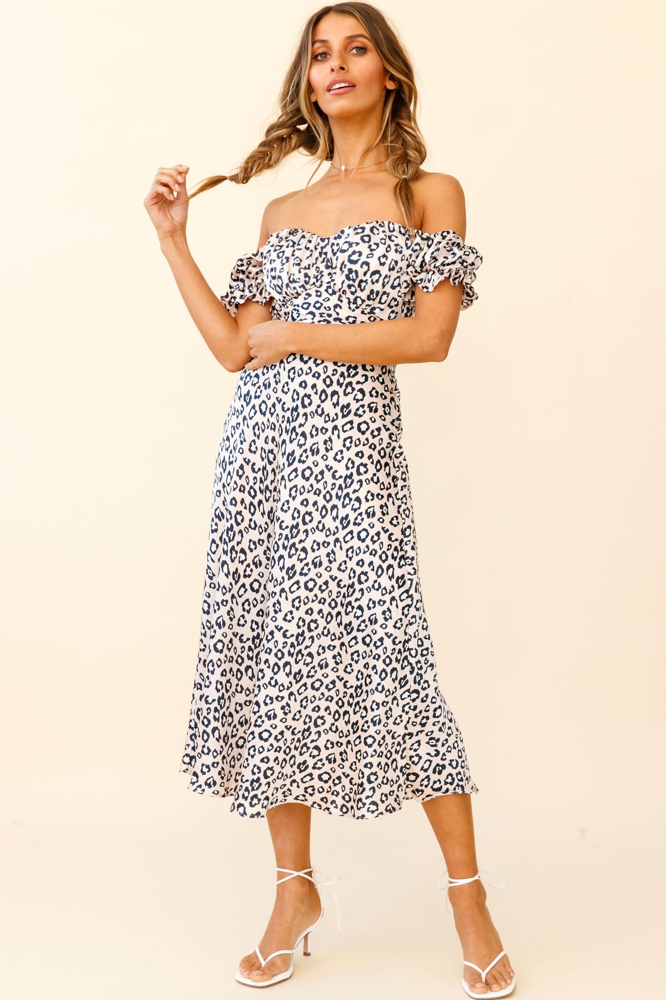 Linka Off-Shoulder Tie Back Midi Dress Leopard Print Pink